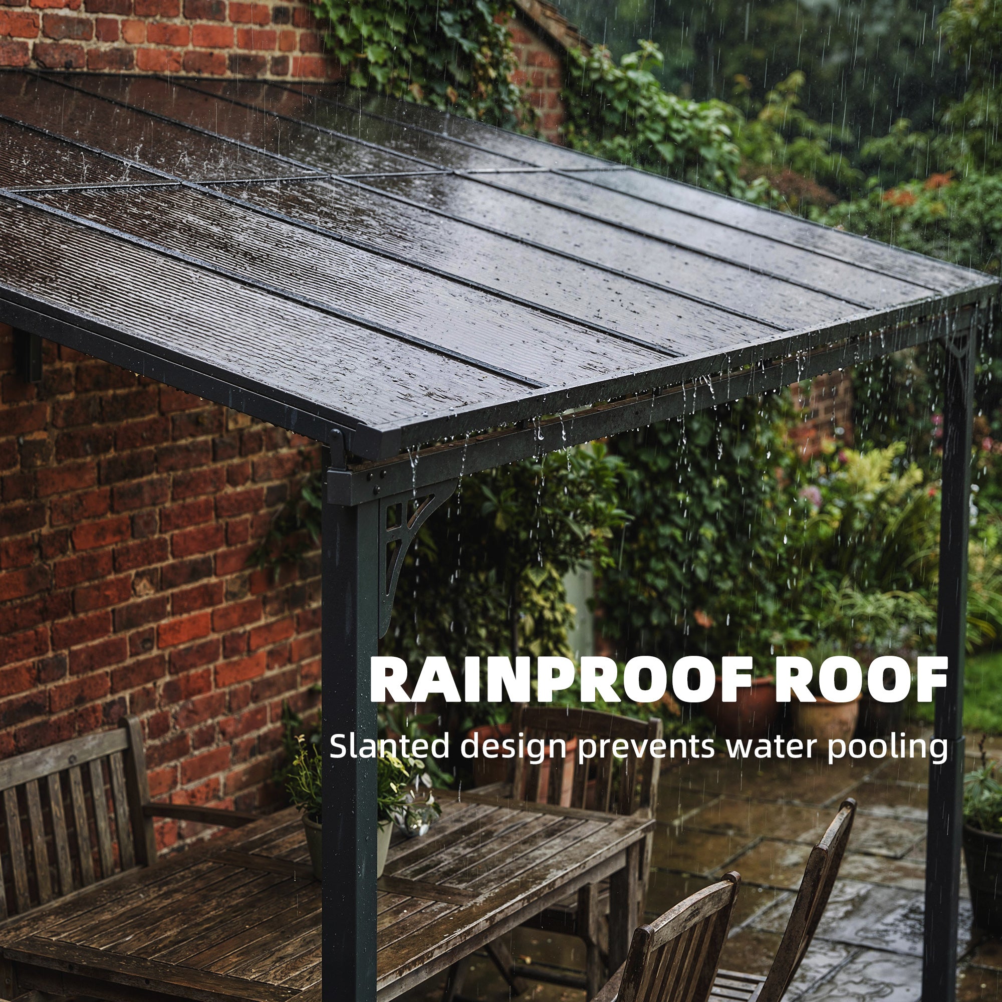 Transform your outdoor space with the Outsunny Wall-Mounted Pergola. Securely anchored to your wall, it provides a stable shelter with a sloped polycarbonate roof that protects against sun, rain and snow. Its heavy-duty galvanised frame with reinforced columns ensures long-lasting strength, while the spacious design creates the desired spot for BBQs, dining, or relaxing with family and friends year-round.