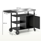 Elevate your grilling experience with the Outsunny BBQ stand for outside, crafted from rust-resistant stainless steel for easy cleaning and heat resistance. This versatile outdoor pizza table features a foldable side table for added prep space, and three convenient shelves for storage. Designed for mobility, it moves effortlessly on wheels, making it a practical companion for your outdoor grill or pizza oven.
