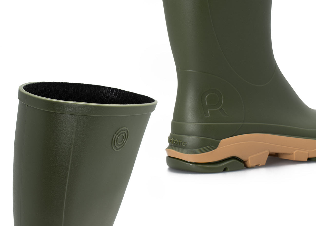 The REMOOVE rain boot, made from bio-sourced and recycled PVC, can be used for all outdoor activities. Produced in Portugal and 100% recyclable, this boot is both responsible and modern.