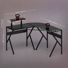 Attention to detail wins games, and trust that this L shaped gaming desk is built to win. Our HOMCOM gaming table features a large desktop to place your electronic devices or other necessities, keeping you engaged in the game. This home office desk features built-in support for all your gaming hardware, providing solutions for your headphones, monitors and drinks. L-shaped design make it suit for corner use. This gamer desk can seamlessly take you from a work station to a battle station.