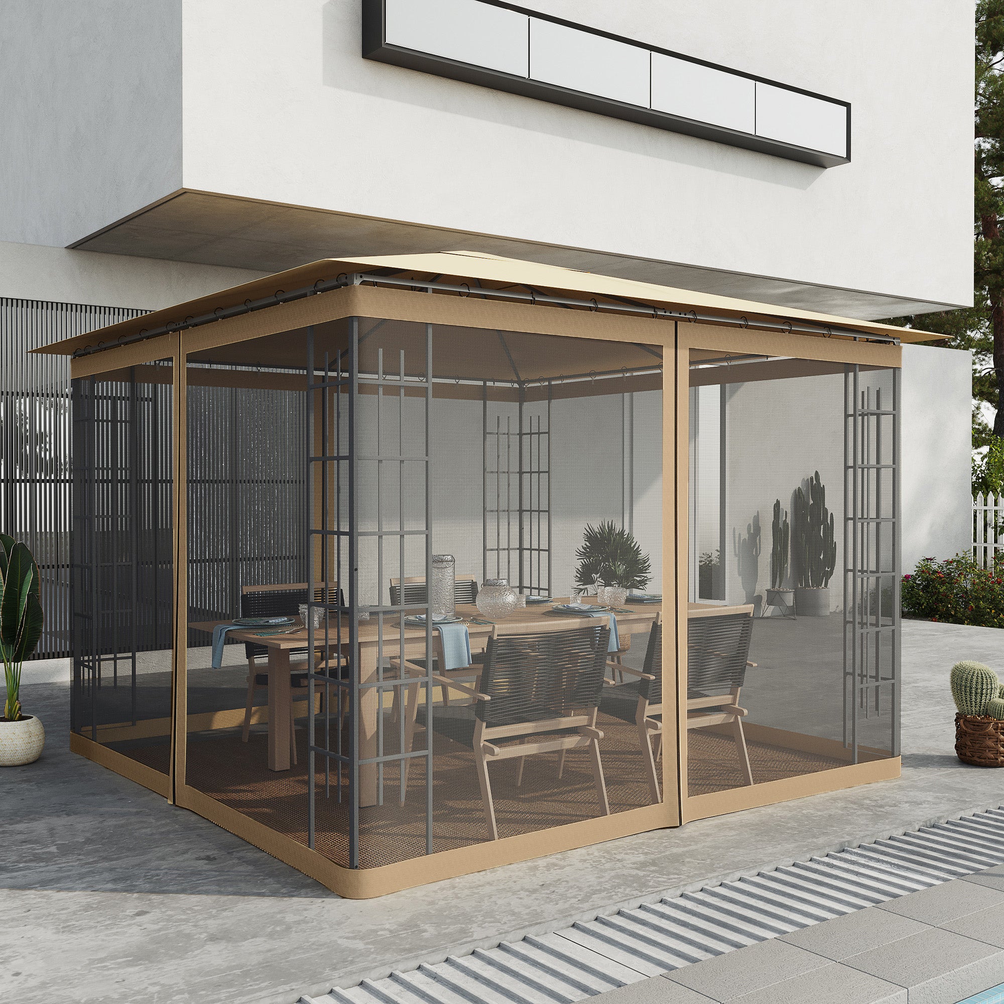 Outsunny 302 x 207cm Universal Replacement Mesh Sidewall Netting for Gazebos and Canopy Tents, (Sidewall Only) Beige