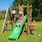 The Rumble Ridge Rock Wall with a single Swing is an encompassing timber play set. With a tower, ladder, rock climbing wall, slide, and a swing, this dynamic equipment offers endless fun and adventure. Crafted for durability and imaginative play, it's a must-have for every garden. Get ready to delight young adventurers and provide hours of active joy.