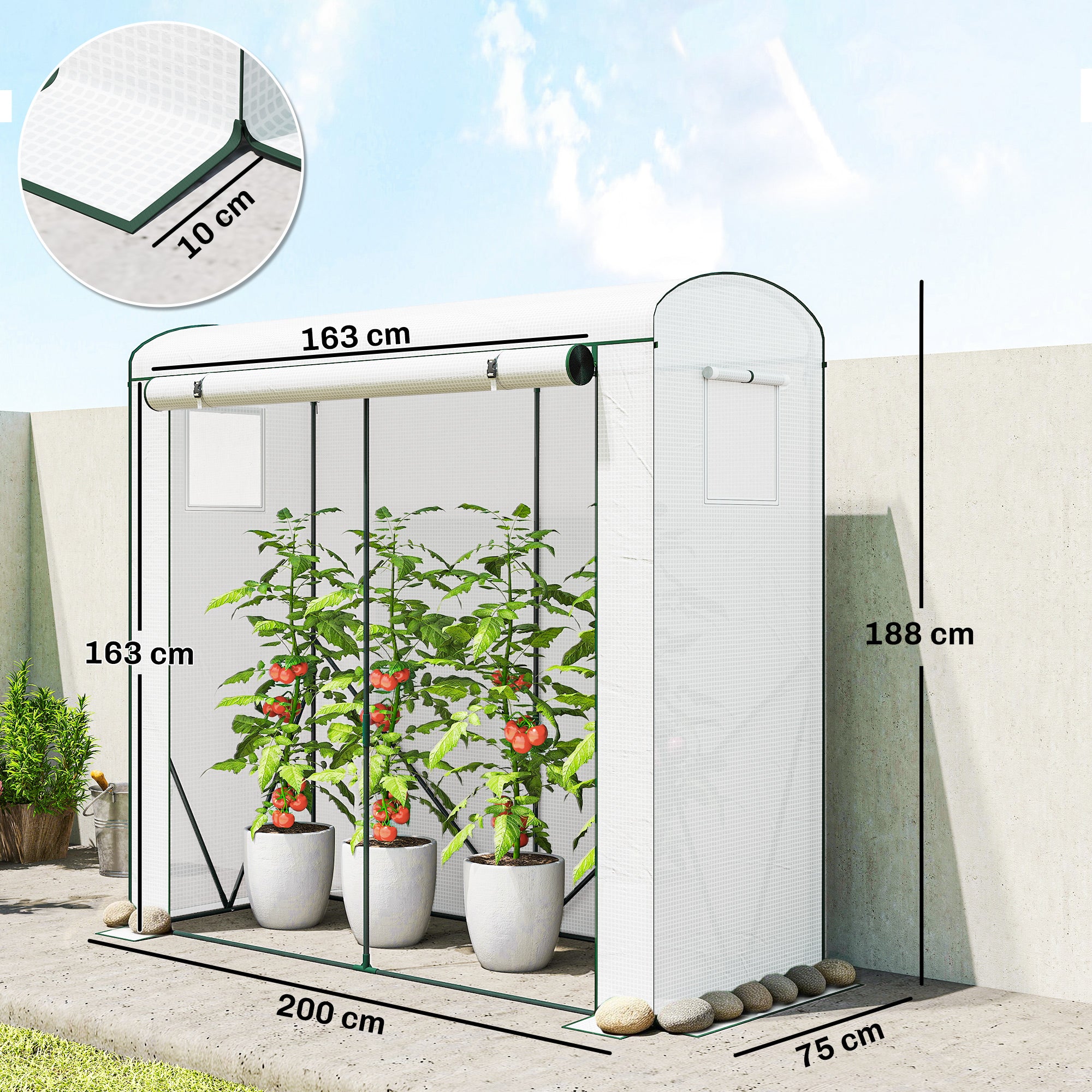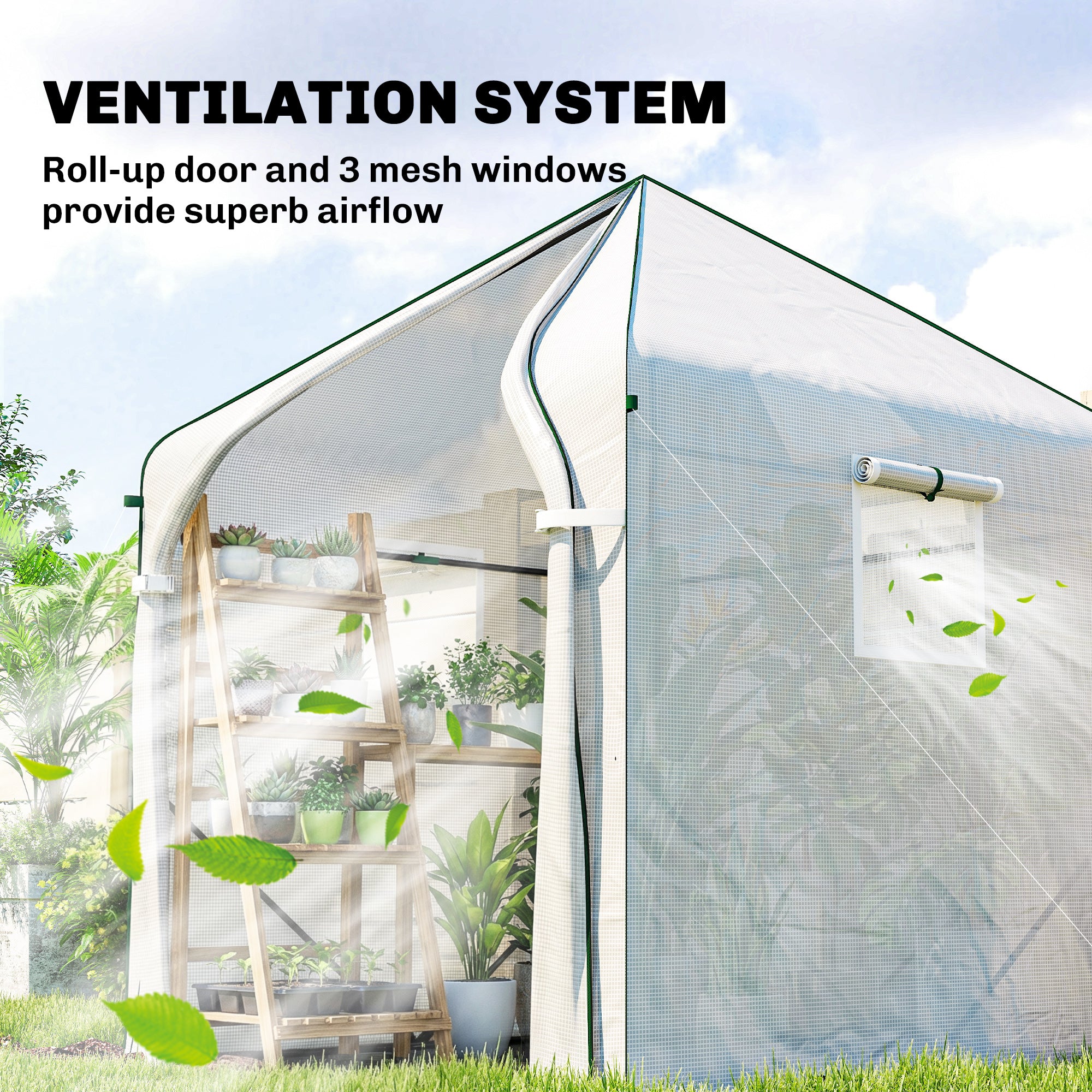 - Ventilation: Integrated side windows and roll-up doors allow for optimal air circulation, keeping your environment comfortable for your plants.