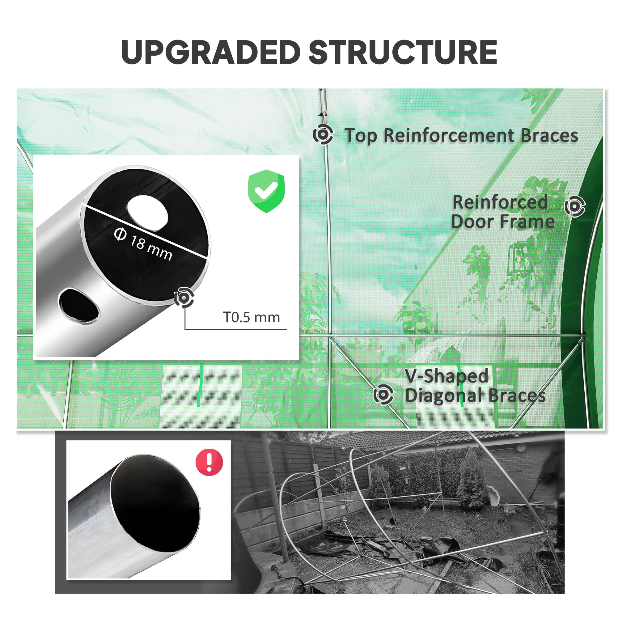 Our polytunnels range from 6ft to 30ft wide, catering to diverse gardening needs. Each structure is crafted from durable materials including: