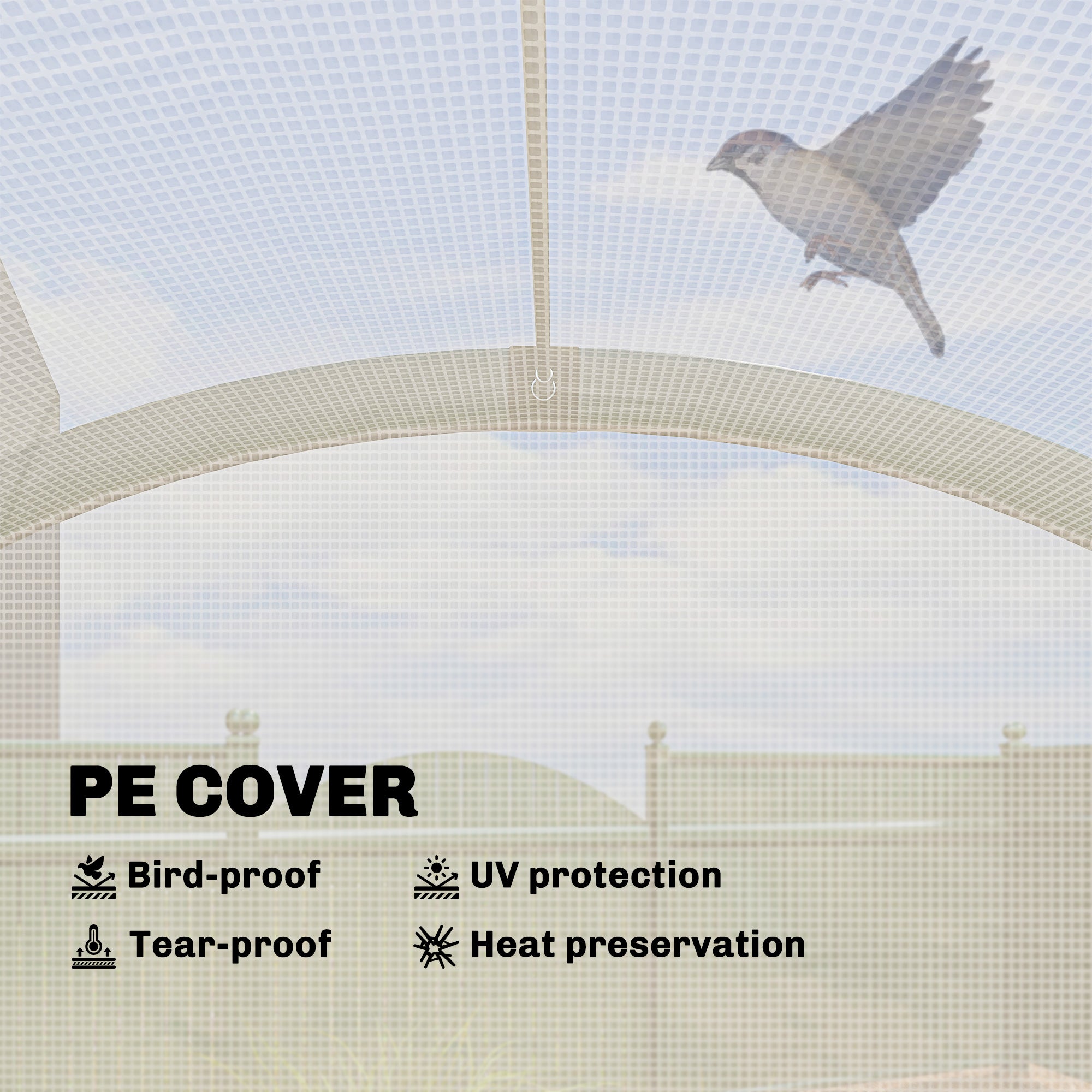 - 140 gsm PE cover shields plants from UV rays and enhances longevity