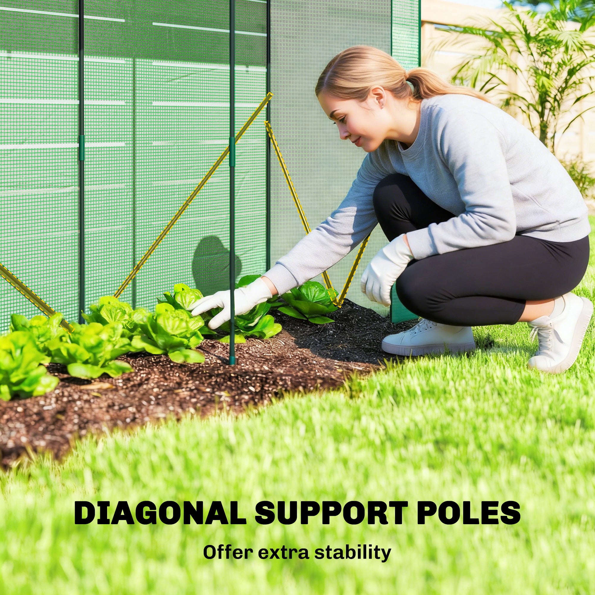 Outsunny Mini Greenhouse, Garden Tomato Growhouse with Roll-Up Door and 2 Mesh Windows, PE Cover, 200 x 75 x 188 cm, Green