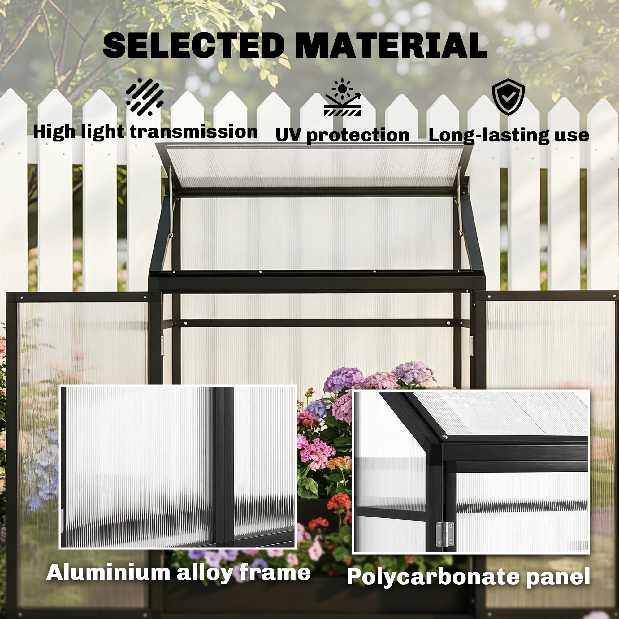Outsunny Polycarbonate Greenhouse with Hinged Door, Top Vent, Lean-to Green House, Walk-in Greenhouse, 4 x 2ft, Black