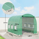 Outsunny Walk-in Greenhouse with Shelves, Polytunnel Greenhouse with Roll-Up Door, 6 Mesh Windows,198 x 275 x 191 cm, Green