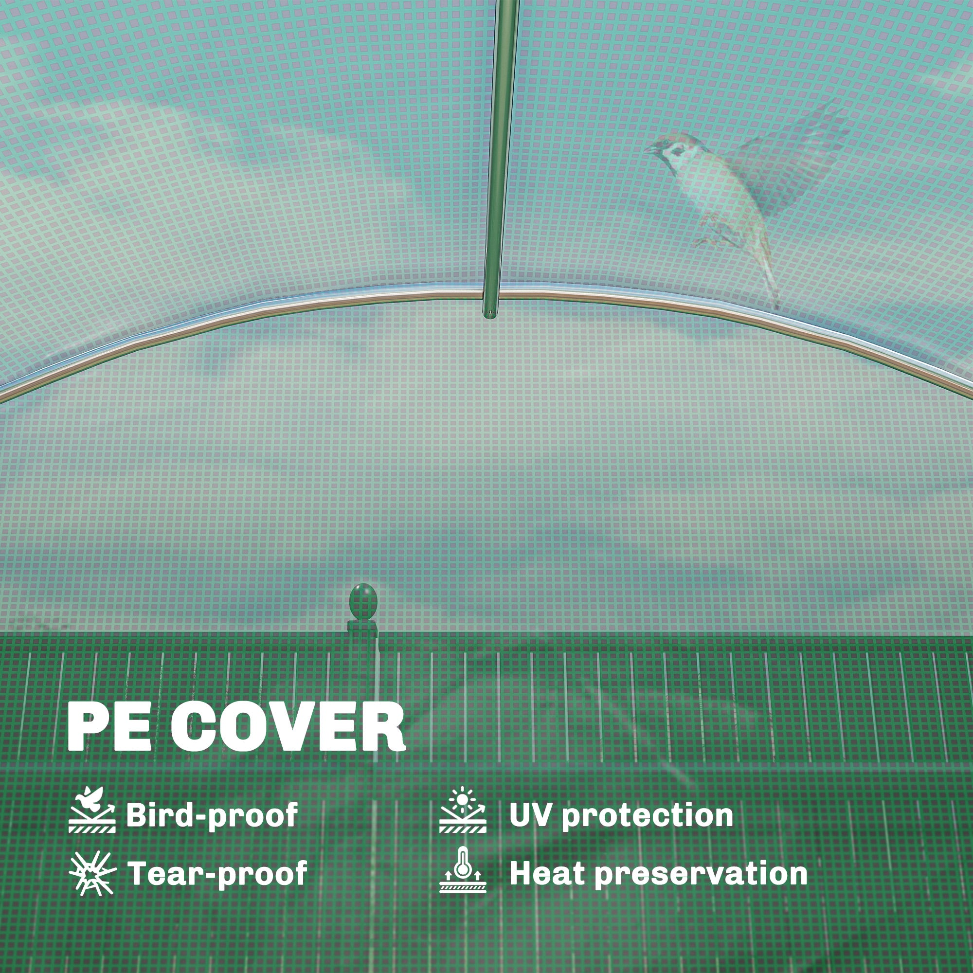 - Features a PE cover that provides UV protection and extends seasons