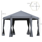 Outsunny 3.8m x 3.2m Pop Up Gazebo Hexagonal Canopy Tent Outdoor Sun Protection with 6 Mesh Sidewalls, Hand Bag, Grey