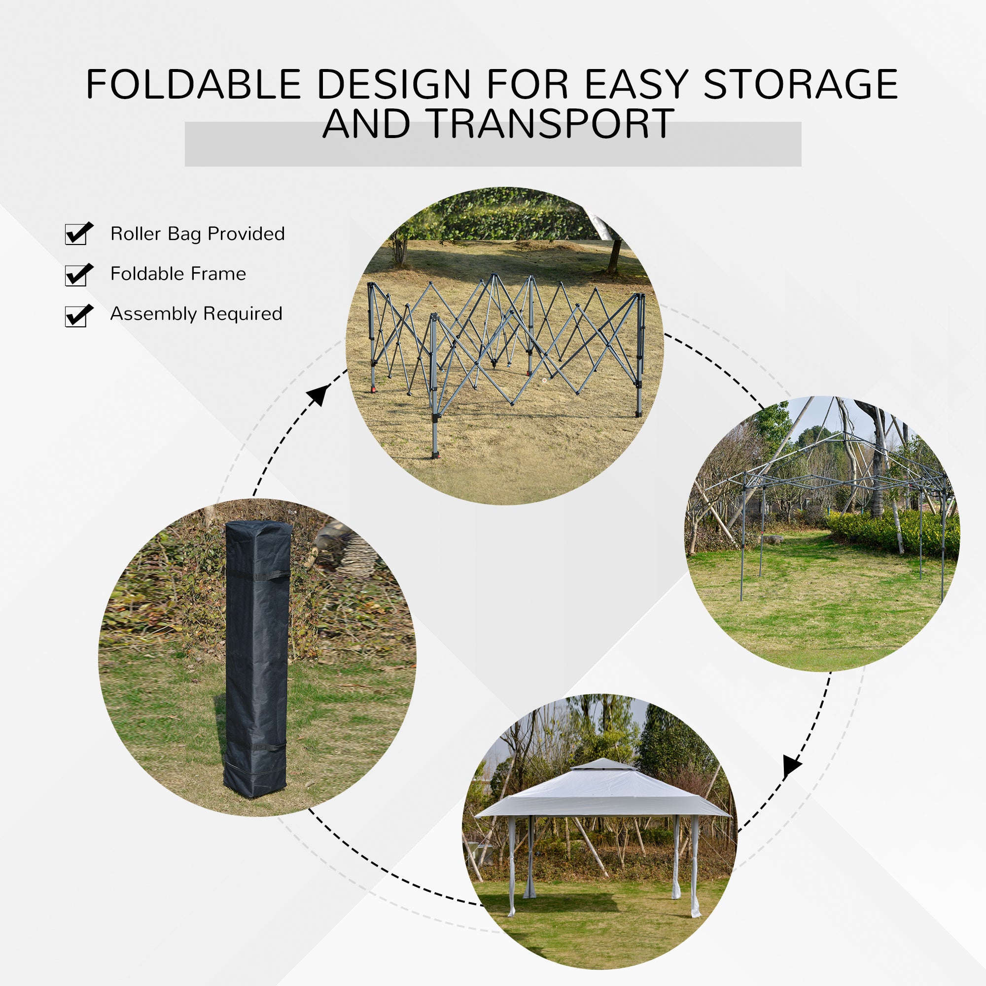 Outsunny 4 x 4m Pop-up Gazebo Double Roof Canopy Tent with UV Proof, Roller Bag & Adjustable Legs Outdoor Party, Steel Frame, White