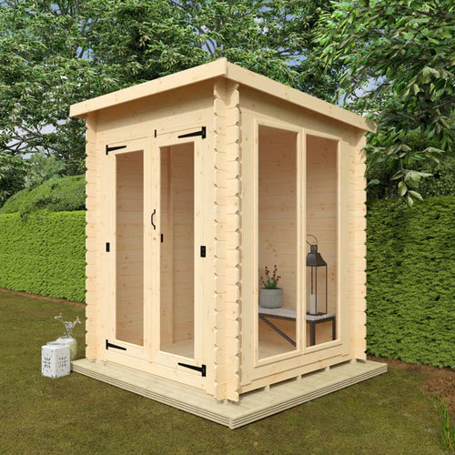 The Astoria 6x6 | 19mm Modular Log Cabin is a compact yet versatile garden building, ideal as a summer house, workshop, or stylish storage space. Built with 19mm interlocking logs and a 28mm x 44mm frame, it offers durability and easy assembly. Its modular design allows you to position the two full-length windows on either side, giving you flexibility to maximise natural light and adapt to your garden layout.