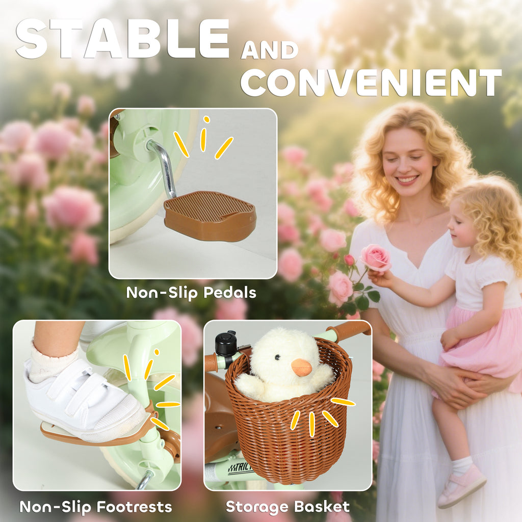 AIYAPLAY 2-In-1 Toddler Trike for 2-5 Years Old, 3 Wheel Bike with Adjustable Parent Handle, Basket for Boys and Girls, Green