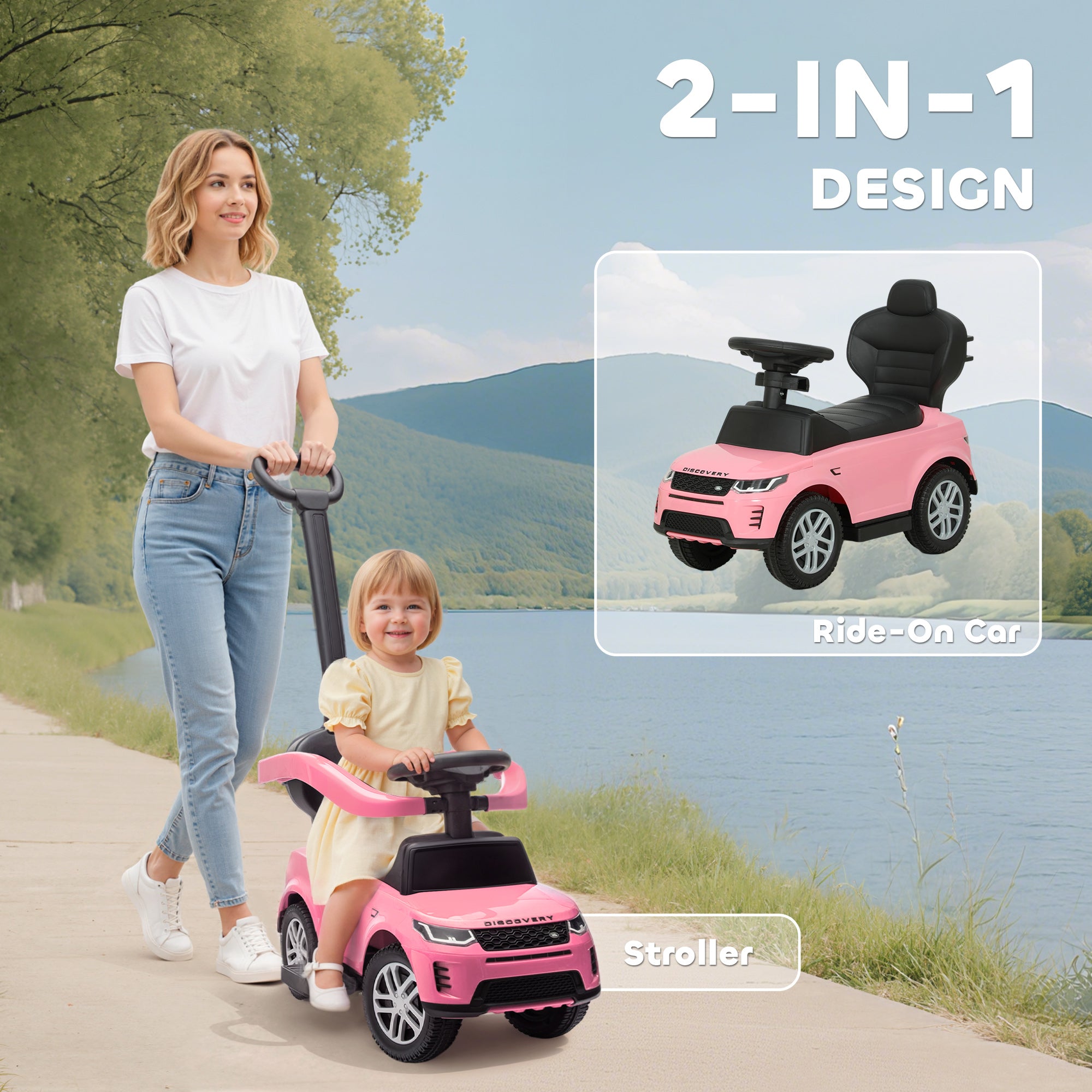 AIYAPLAY LAND ROVER DISCOVERY Licensed Baby Push Car, 2-in-1 Ride on Car with Push Handle and Safety Guardrail, Pink