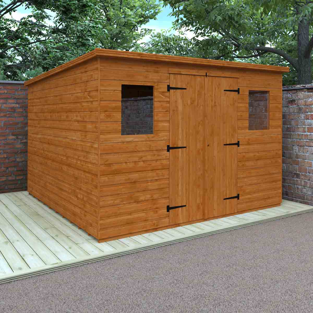 The Workman Pent is a modern flat-roof iteration of the ever-popular Workman Apex, a best-seller for many years. Available in various sizes, the Workman Pent offers practical and spacious outdoor storage. Boasting impressive dimensions, it features excellent eaves height, catering to both storage needs and workshop requirements. Double doors on the long side provide easy access, whether placed against a wall or fence. Designed with style in mind, the Workman Pent incorporates windows on either side of the door while maintaining its sturdy construction, thanks to the 12mm shiplap cladding and robust rounded four-corner framework, crafted from top-quality European softwoods. This building stands as a durable and valuable investment.