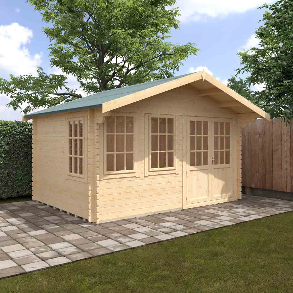 The Forde is a truly versatile garden building. Made with our high grade 44mm European Softwood interlocking logs and featuring draught sealed windows and doors, the Forde Log Cabin will make your garden that little bit more luxurious. This 44mm log cabin is constructed with high quality in mind - it features a practical 600mm (approx) roof overhang on the front gable to protect you from the elements. You must ensure that this garden building is assembled strictly in accordance with the assembly instructions that are provided and is installed on a firm and level base constructed from a suitably durable material. The garden building should be treated shortly after assembly, both externally and internally, with a good quality wood preserver and treated with a water-resistant treatment. Treatment should be reapplied annually to prolong the life of your building. All glazing units must be sealed, inside and out with silicone or other watertight solution of your choice (not supplied). Images and photos of products are provided for illustrative purposes only. Please note that product colours can vary slightly due to the digital photography process and variations in individual user monitor settings.