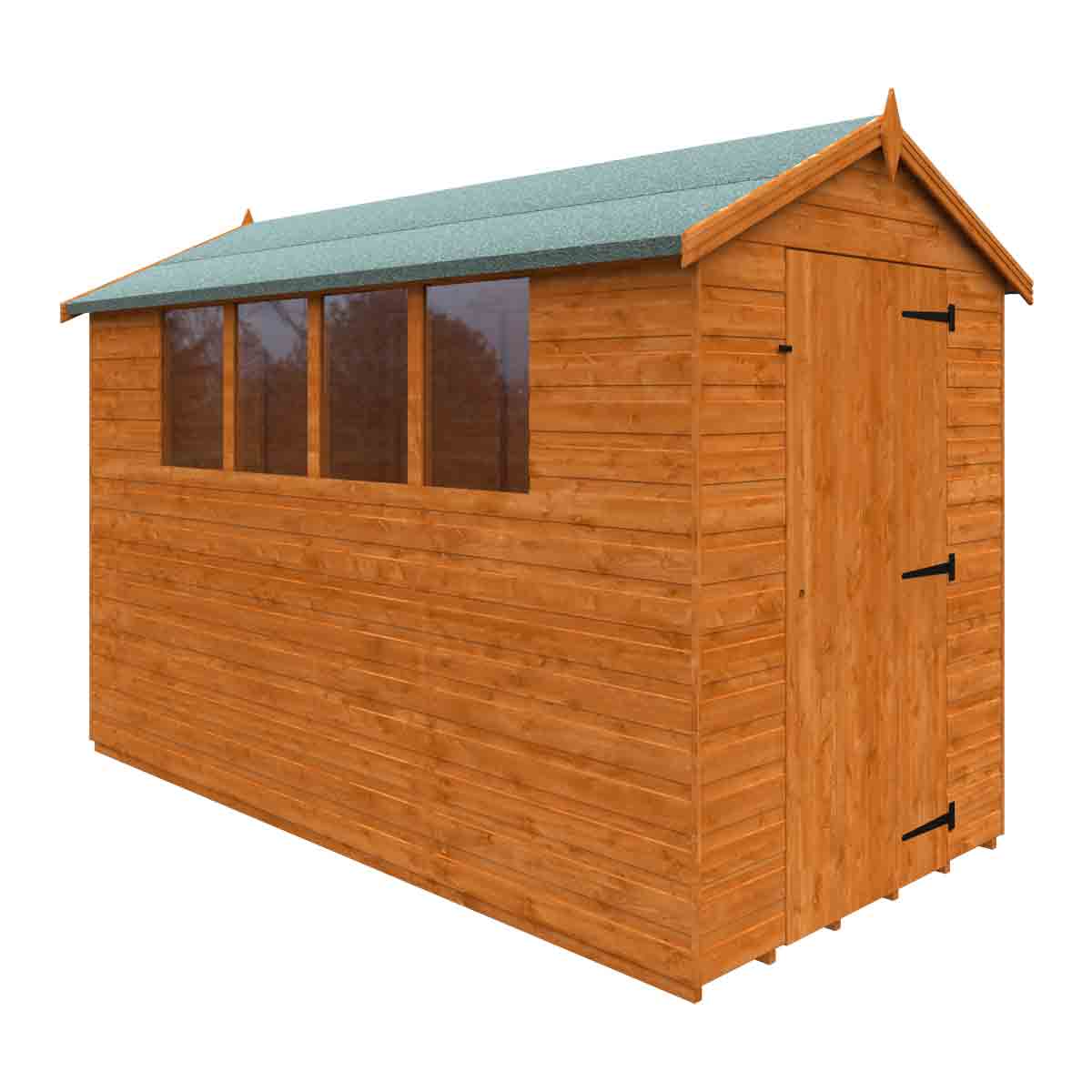 A traditional style garden shed with plenty of light and headroom in a vast range of sizes. The door will go on either end and the windows can be put on either side for flexibility. You must ensure that this garden building is assembled strictly in accordance with the assembly instructions that are provided and is installed on a firm and level base constructed from a suitably durable material. The garden building should be treated shortly after assembly, both externally and internally, with a good quality wood preserver and treated with a water-resistant treatment. Treatment should be reapplied annually to prolong the life of your building. All glazing units must be sealed, inside and out with silicone or other watertight solution of your choice (not supplied). Images and photos of products are provided for illustrative purposes only. Please note that product colours can vary slightly due to the digital photography process and variations in individual user monitor settings.
