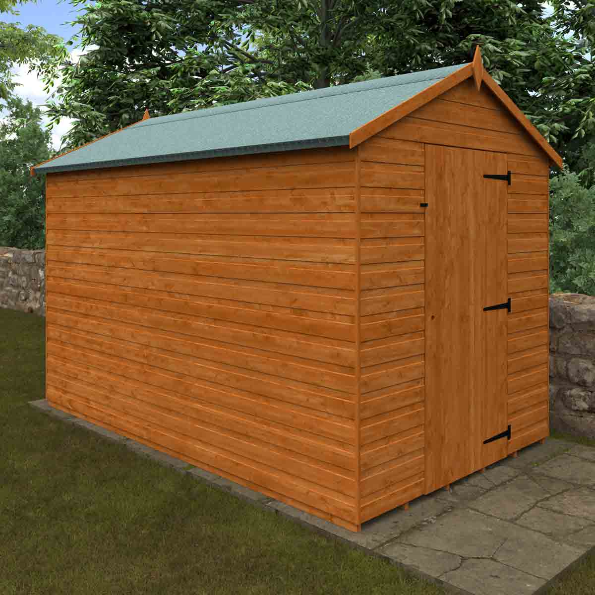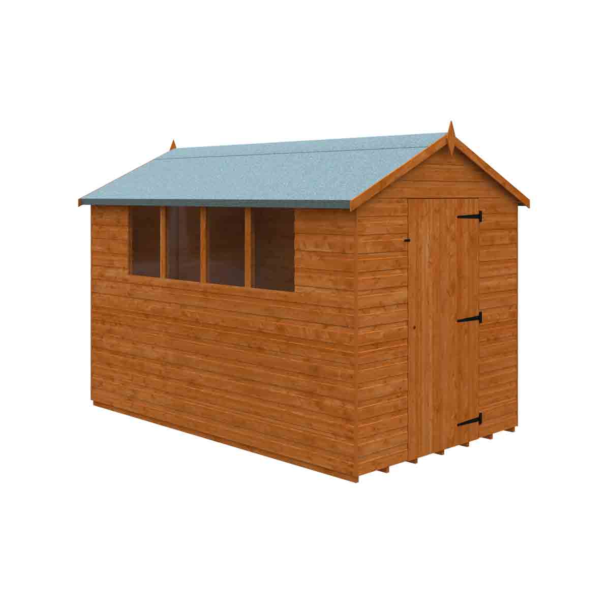A traditional style garden shed with plenty of light and headroom in a vast range of sizes. The door will go on either end and the windows can be put on either side for flexibility. You must ensure that this garden building is assembled strictly in accordance with the assembly instructions that are provided and is installed on a firm and level base constructed from a suitably durable material. The garden building should be treated shortly after assembly, both externally and internally, with a good quality wood preserver and treated with a water-resistant treatment. Treatment should be reapplied annually to prolong the life of your building. All glazing units must be sealed, inside and out with silicone or other watertight solution of your choice (not supplied). Images and photos of products are provided for illustrative purposes only. Please note that product colours can vary slightly due to the digital photography process and variations in individual user monitor settings.