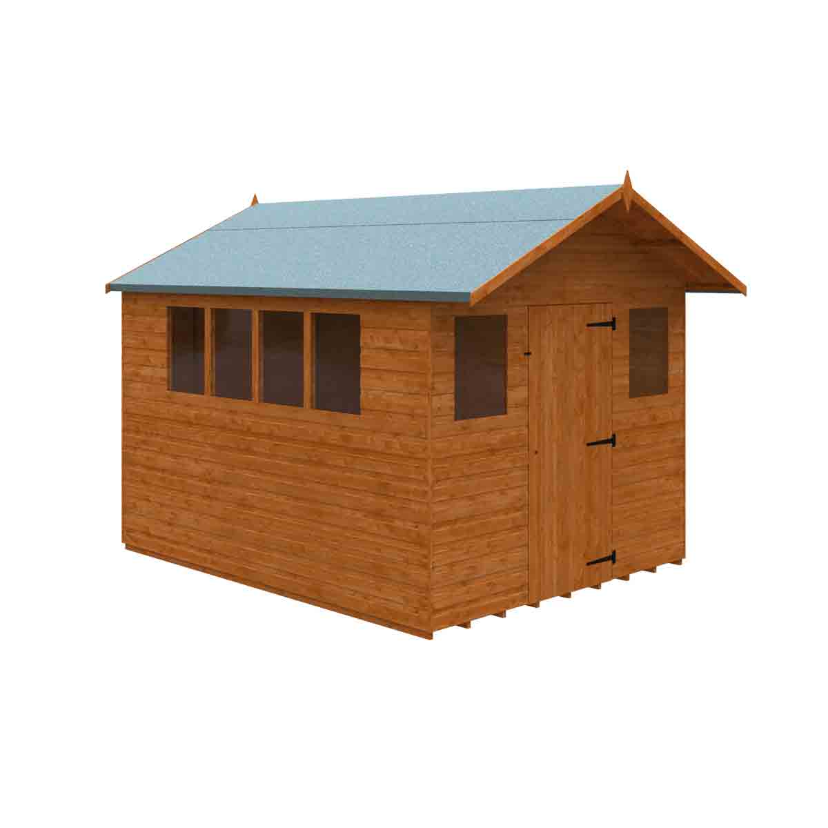 An economy-styled summerhouse comes as standard with door centrally situated in the gable front end with a window either side. This building comes with the generous roof overhang and the window panel may be positioned at either side. You must ensure that this garden building is assembled strictly in accordance with the assembly instructions that are provided and is installed on a firm and level base constructed from a suitably durable material. The garden building should be treated shortly after assembly, both externally and internally, with a good quality wood preserver and treated with a water-resistant treatment. Treatment should be reapplied annually to prolong the life of your building. All glazing units must be sealed, inside and out with silicone or other watertight solution of your choice (not supplied). Images and photos of products are provided for illustrative purposes only. Please note that product colours can vary slightly due to the digital photography process and variations in individual user monitor settings.