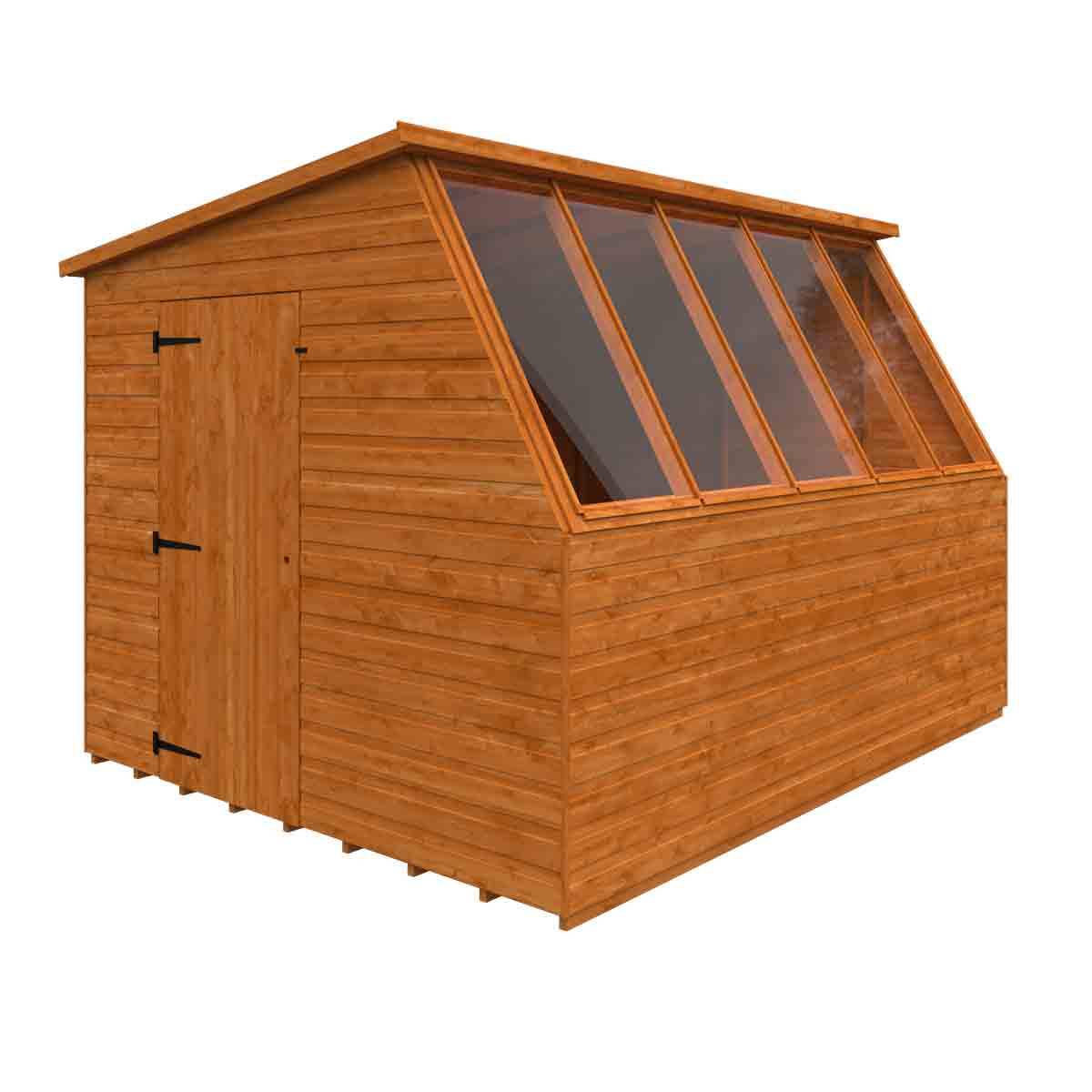 The Jewel multipurpose shed has a striking design which ensures maximum natural light is made available. It comes fitted with a useful full-length internal bench, mounted under the window. You must ensure that this garden building is assembled strictly in accordance with the assembly instructions that are provided and is installed on a firm and level base constructed from a suitably durable material. The garden building should be treated shortly after assembly, both externally and internally, with a good quality wood preserver and treated with a water-resistant treatment. Treatment should be reapplied annually to prolong the life of your building. All glazing units must be sealed, inside and out with silicone or other watertight solution of your choice (not supplied). Images and photos of products are provided for illustrative purposes only. Please note that product colours can vary slightly due to the digital photography process and variations in individual user monitor settings.