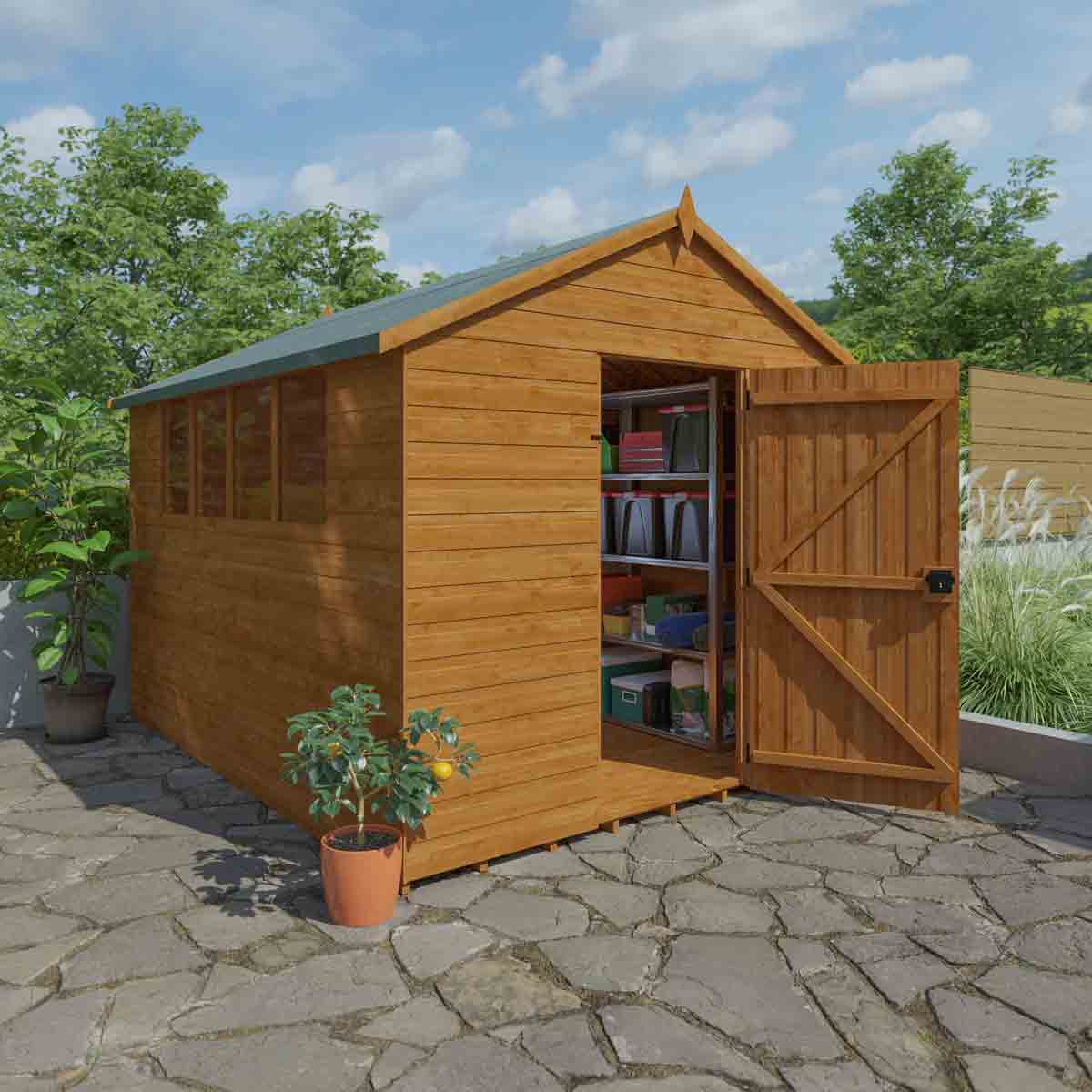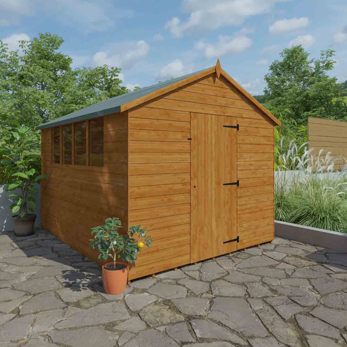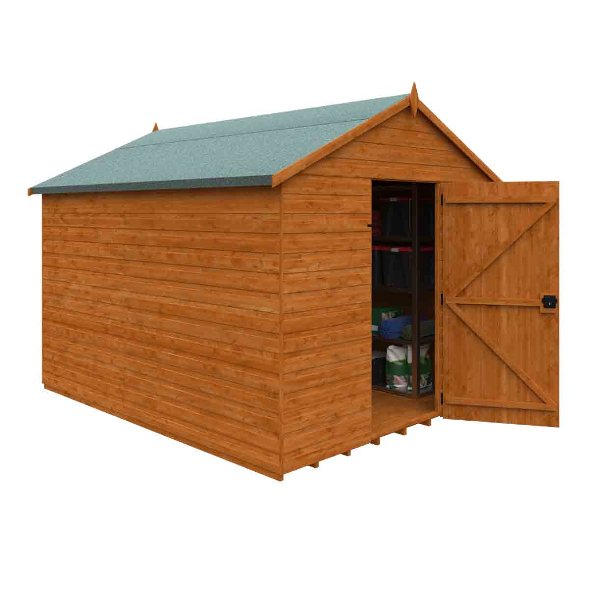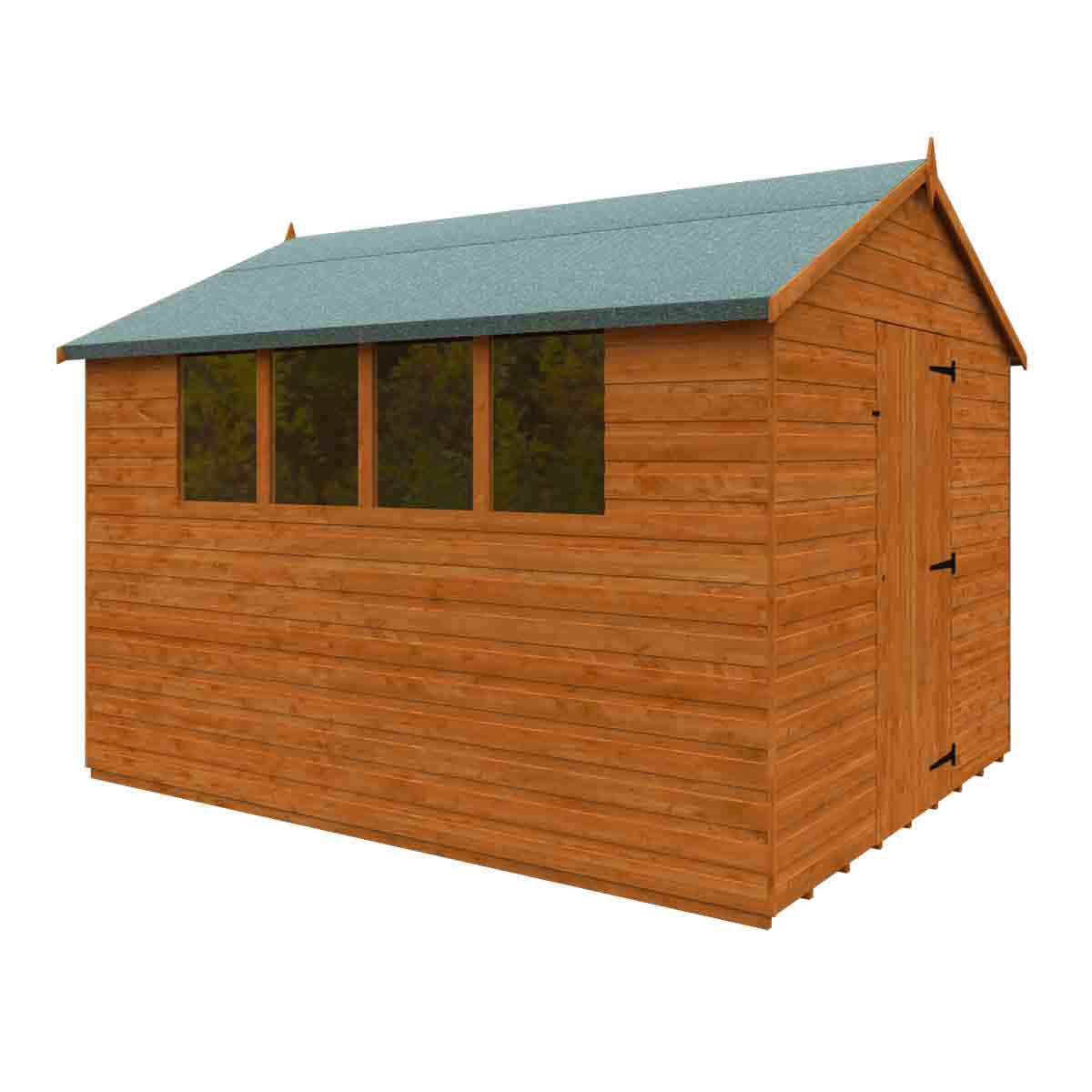 A traditional style garden shed with plenty of light and headroom in a vast range of sizes. The door will go on either end and the windows can be put on either side for flexibility. You must ensure that this garden building is assembled strictly in accordance with the assembly instructions that are provided and is installed on a firm and level base constructed from a suitably durable material. The garden building should be treated shortly after assembly, both externally and internally, with a good quality wood preserver and treated with a water-resistant treatment. Treatment should be reapplied annually to prolong the life of your building. All glazing units must be sealed, inside and out with silicone or other watertight solution of your choice (not supplied). Images and photos of products are provided for illustrative purposes only. Please note that product colours can vary slightly due to the digital photography process and variations in individual user monitor settings.