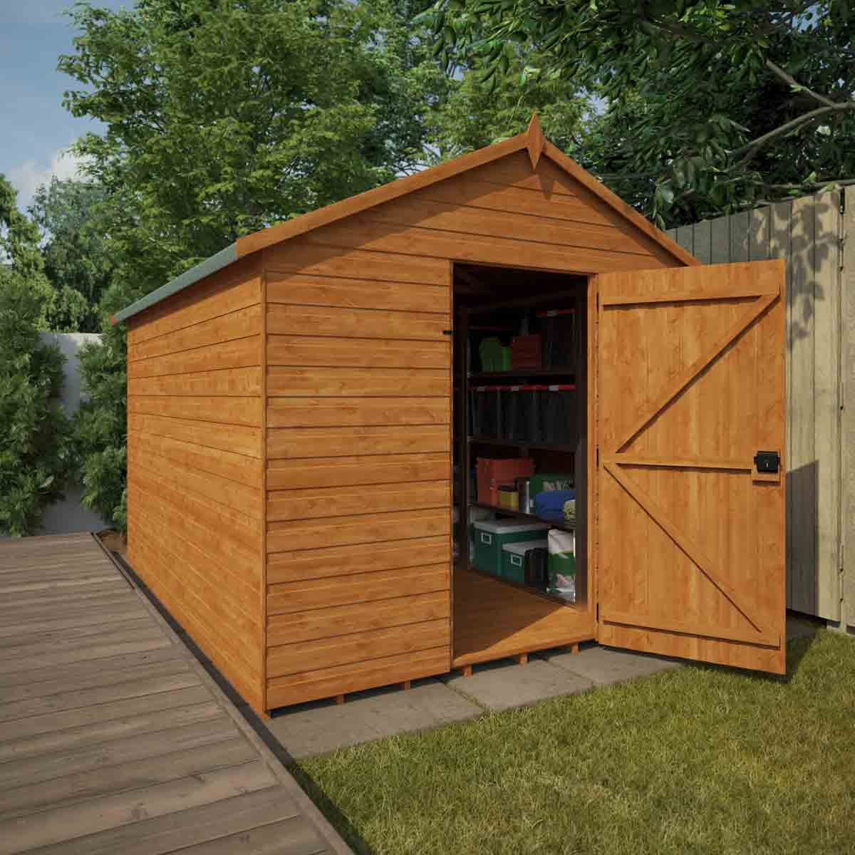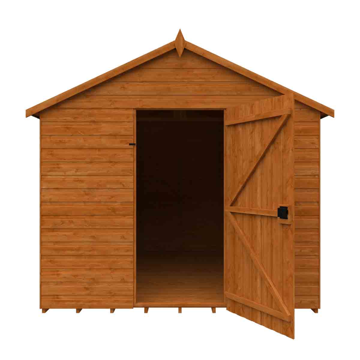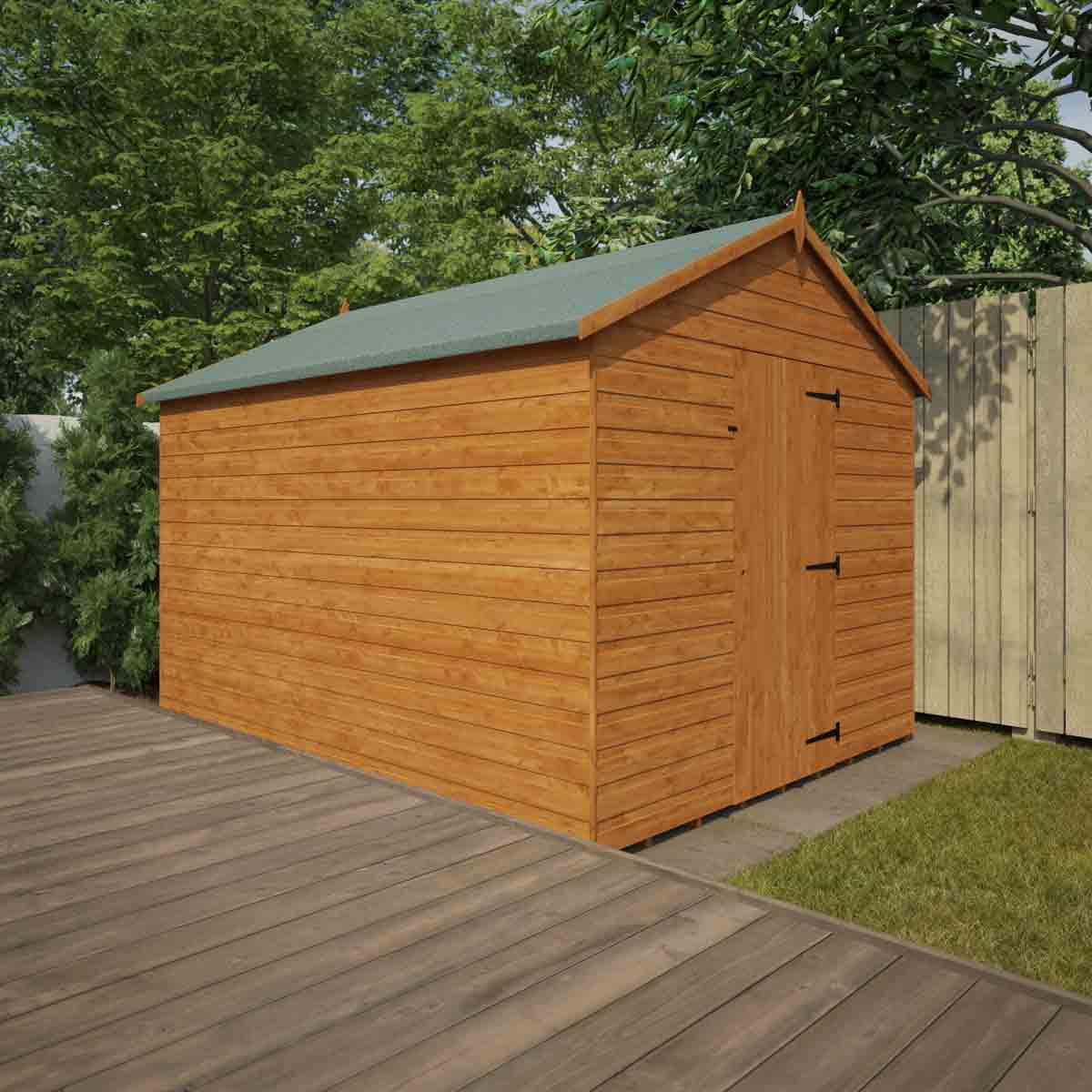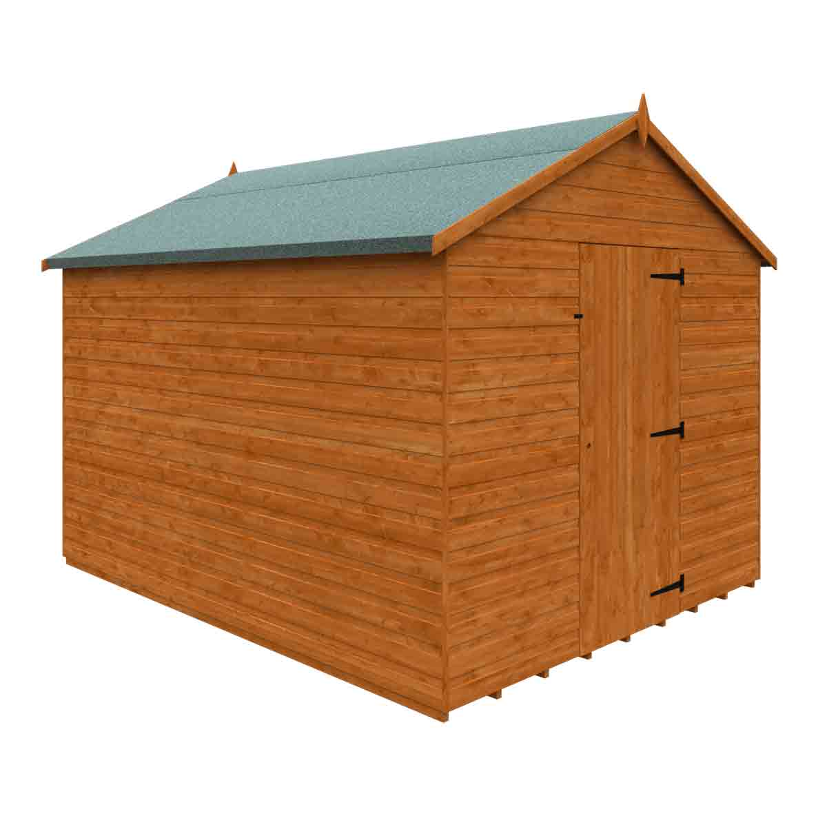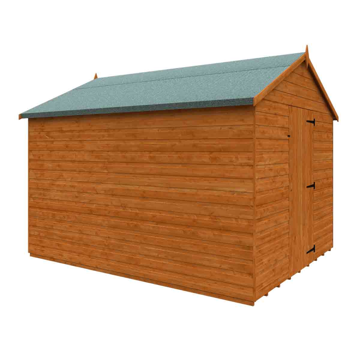 A traditional style garden shed with plenty of light and headroom in a vast range of sizes. The door will go on either end for flexibility. You must ensure that this garden building is assembled strictly in accordance with the assembly instructions that are provided and is installed on a firm and level base constructed from a suitably durable material. The garden building should be treated shortly after assembly, both externally and internally, with a good quality wood preserver and treated with a water-resistant treatment. Treatment should be reapplied annually to prolong the life of your building. All glazing units must be sealed, inside and out with silicone or other watertight solution of your choice (not supplied). Images and photos of products are provided for illustrative purposes only. Please note that product colours can vary slightly due to the digital photography process and variations in individual user monitor settings.