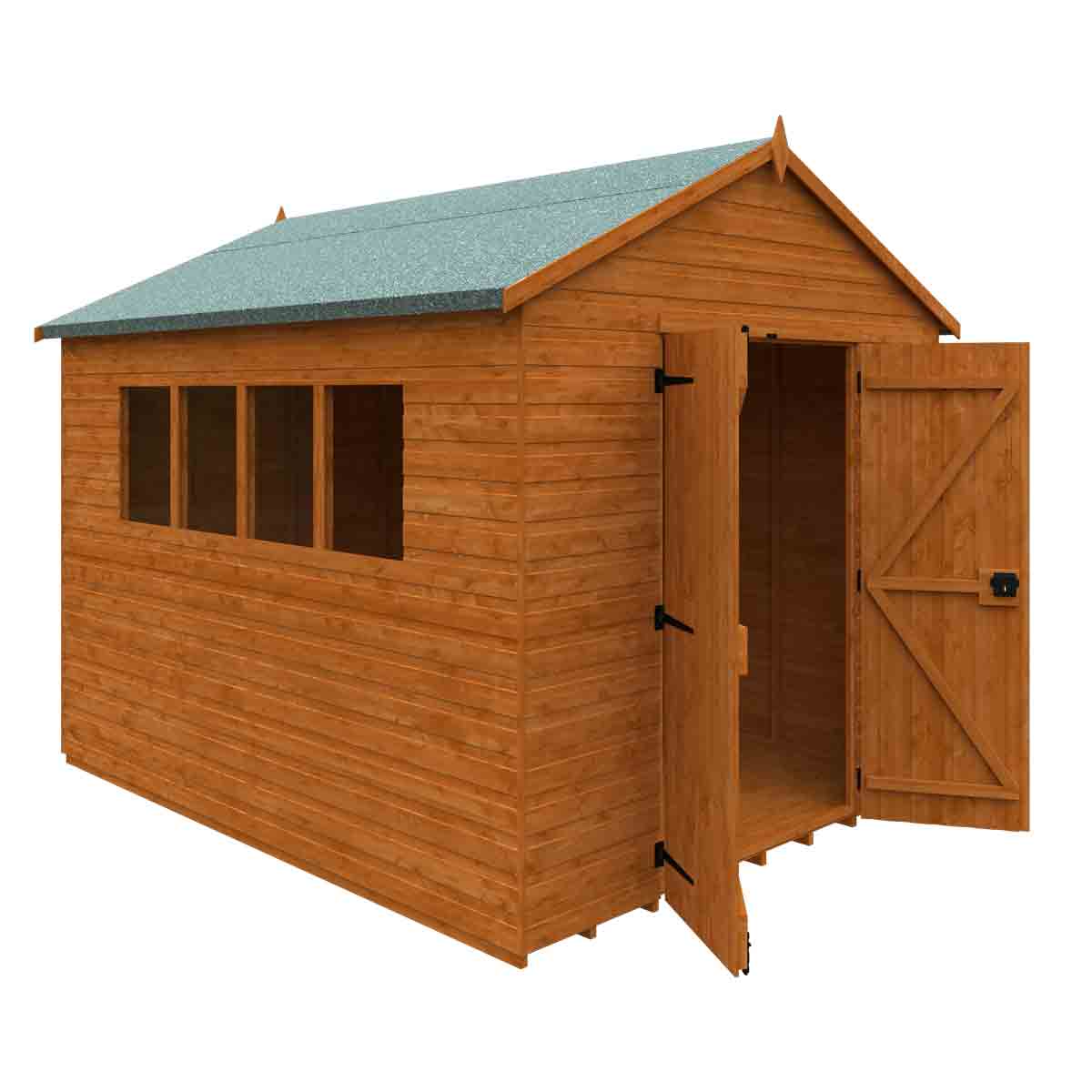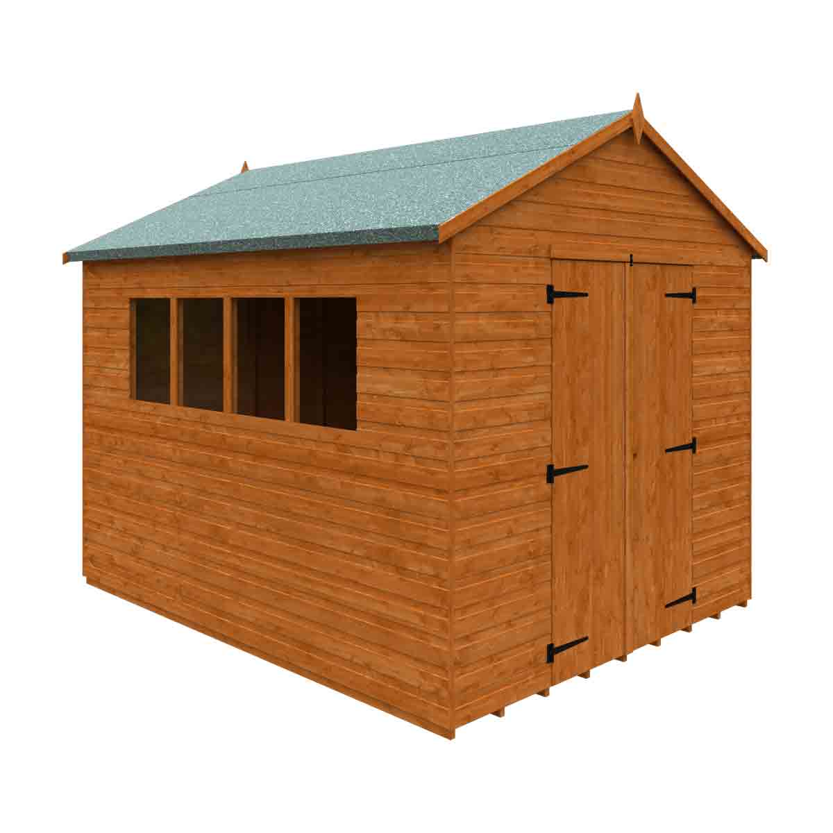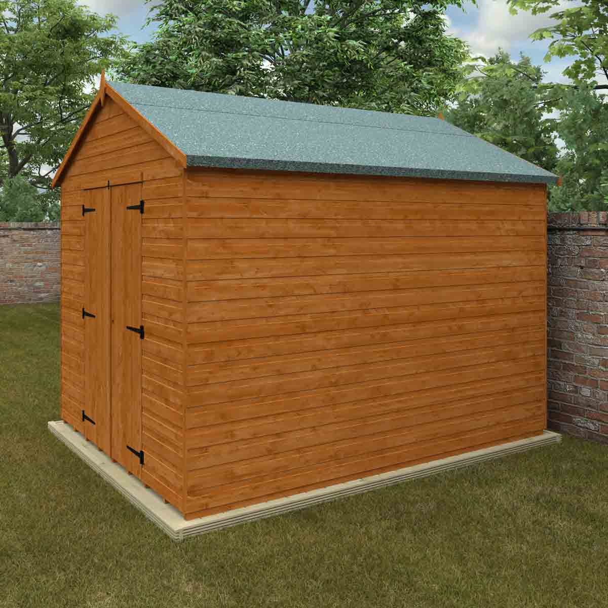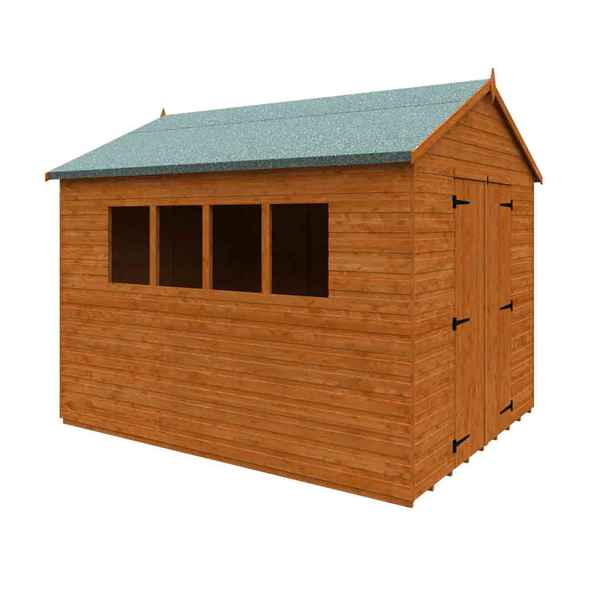 Taller than average, this strongly built workshop with double doors provides secure storage and extra-high internal working space for the home craftsman or professional. You must ensure that this garden building is assembled strictly in accordance with the assembly instructions that are provided and is installed on a firm and level base constructed from a suitably durable material. The garden building should be treated shortly after assembly, both externally and internally, with a good quality wood preserver and treated with a water-resistant treatment. Treatment should be reapplied annually to prolong the life of your building. All glazing units must be sealed, inside and out with silicone or other watertight solution of your choice (not supplied). Images and photos of products are provided for illustrative purposes only. Please note that product colours can vary slightly due to the digital photography process and variations in individual user monitor settings.