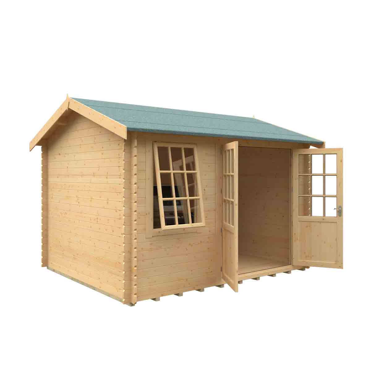 Take a look at the stunning Georgian style Henley log cabin. With attractive Georgian doors and a gorgeous Georgian opening window this truly is one of our finest log cabins. The apex roof ensures fantastic internal space and the building comes in a range of sizes to suit any garden. The Henley is manufactured using 44mm high grade European softwood logs. You must ensure that this garden building is assembled strictly in accordance with the assembly instructions that are provided and is installed on a firm and level base constructed from a suitably durable material. The garden building should be treated shortly after assembly, both externally and internally, with a good quality wood preserver and treated with a water-resistant treatment. Treatment should be reapplied annually to prolong the life of your building. Images and photos of products are provided for illustrative purposes only. Please note that product colours can vary slightly due to the digital photography process and variations in individual user monitor settings.