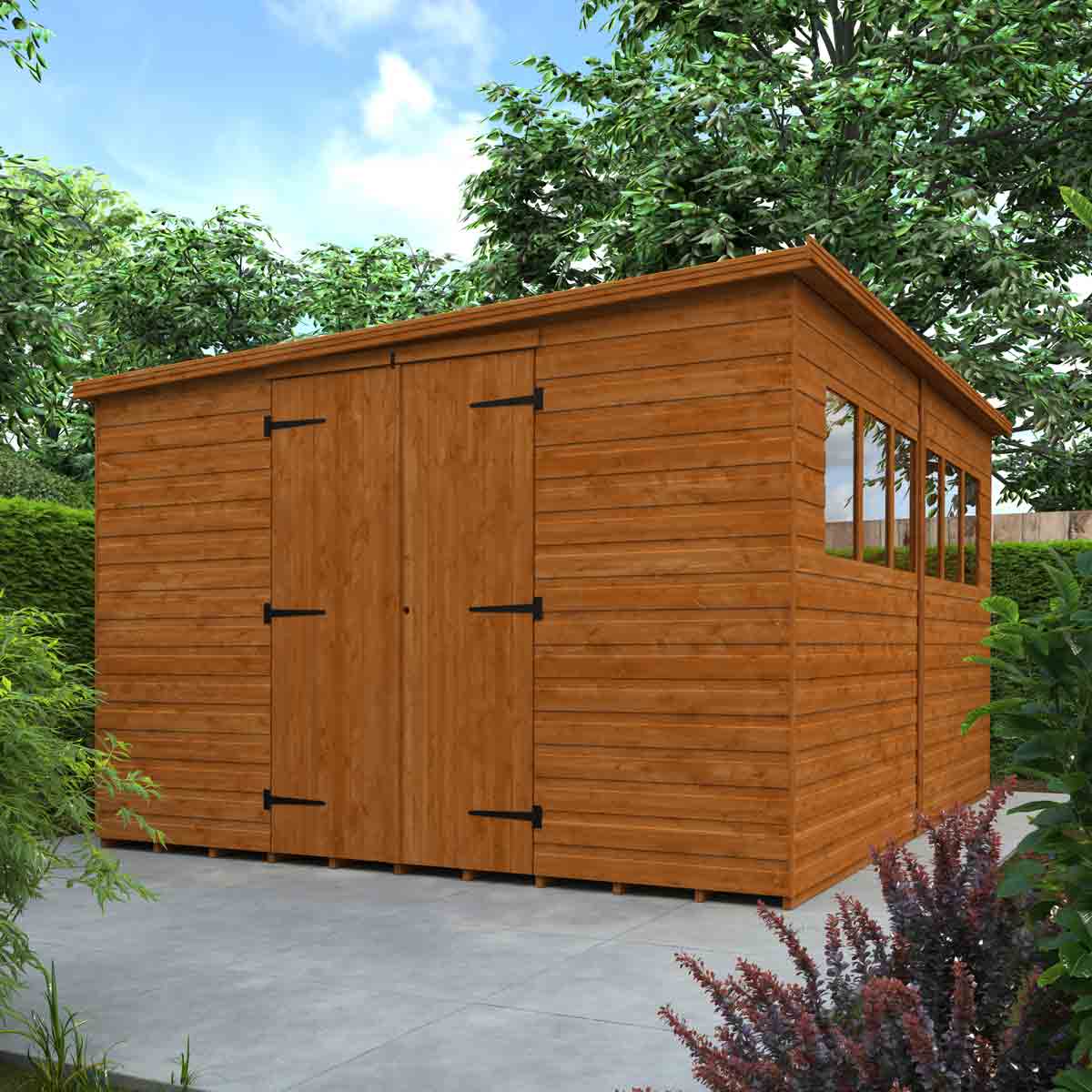 When size matters it is time to go for our extra-large range of secure storage workshops. With double doors and a massive internal space, the XL is just the job. You must ensure that this garden building is assembled strictly in accordance with the assembly instructions that are provided and is installed on a firm and level base constructed from a suitably durable material. The garden building should be treated shortly after assembly, both externally and internally, with a good quality wood preserver and treated with a water-resistant treatment. Treatment should be reapplied annually to prolong the life of your building. All glazing units must be sealed, inside and out with silicone or other watertight solution of your choice (not supplied). Images and photos of products are provided for illustrative purposes only. Please note that product colours can vary slightly due to the digital photography process and variations in individual user monitor settings.