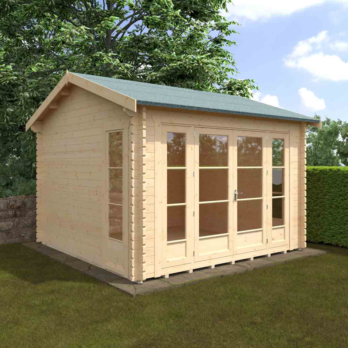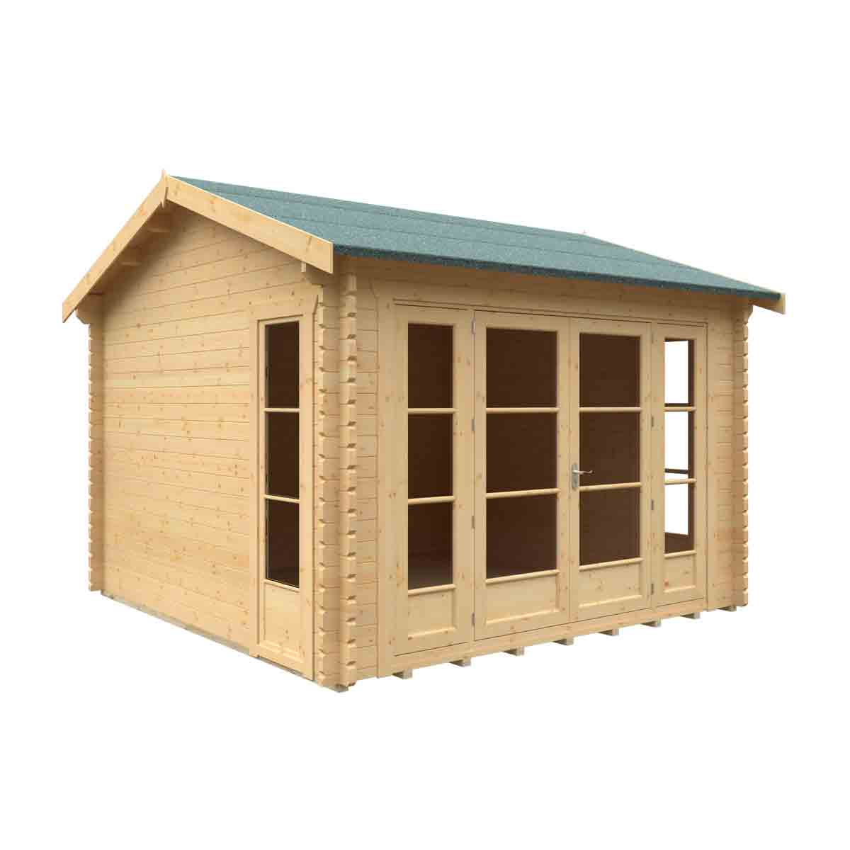 This spacious Bamber Log Cabin blends both comfort and luxury in to one affordable package. Complete with professional full length joiner made windows you’ll be sure to enjoy those summer days relaxing in the beautiful sunlight. The extra thick 44mm interlocking logs are manufactured to the highest quality standard providing additional warmth, security and protection. You must ensure that this garden building is assembled strictly in accordance with the assembly instructions that are provided and is installed on a firm and level base constructed from a suitably durable material. The garden building should be treated shortly after assembly, both externally and internally, with a good quality wood preserver and treated with a water-resistant treatment. Treatment should be reapplied annually to prolong the life of your building. Images and photos of products are provided for illustrative purposes only. Please note that product colours can vary slightly due to the digital photography process and variations in individual user monitor settings.