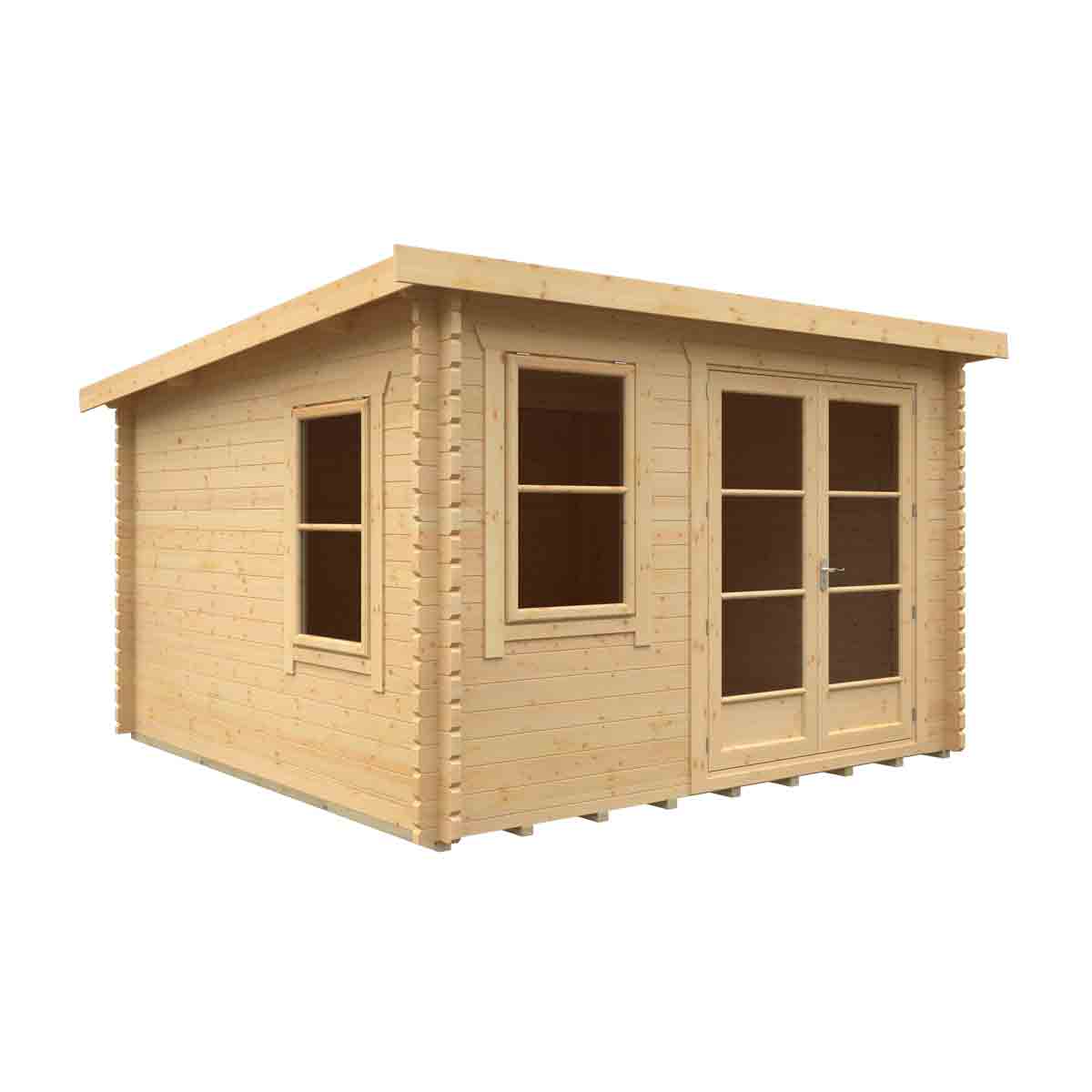One of the best pent roof style log cabins on offer is the Belton log cabin - a very smart looking and feeling 44mm log cabin. Key features include draught sealed joiner made windows as standard, as well as the draft sealed and lockable fully glazed double doors. The Belton is a hugely adaptable building and is easy to customise, you may wish to use it as an outdoor bedroom, office or home gym. You must ensure that this garden building is assembled strictly in accordance with the assembly instructions that are provided and is installed on a firm and level base constructed from a suitably durable material. The garden building should be treated shortly after assembly, both externally and internally, with a good quality wood preserver and treated with a water-resistant treatment. Treatment should be reapplied annually to prolong the life of your building. Images and photos of products are provided for illustrative purposes only. Please note that product colours can vary slightly due to the digital photography process and variations in individual user monitor settings.