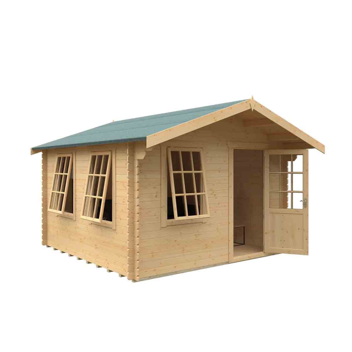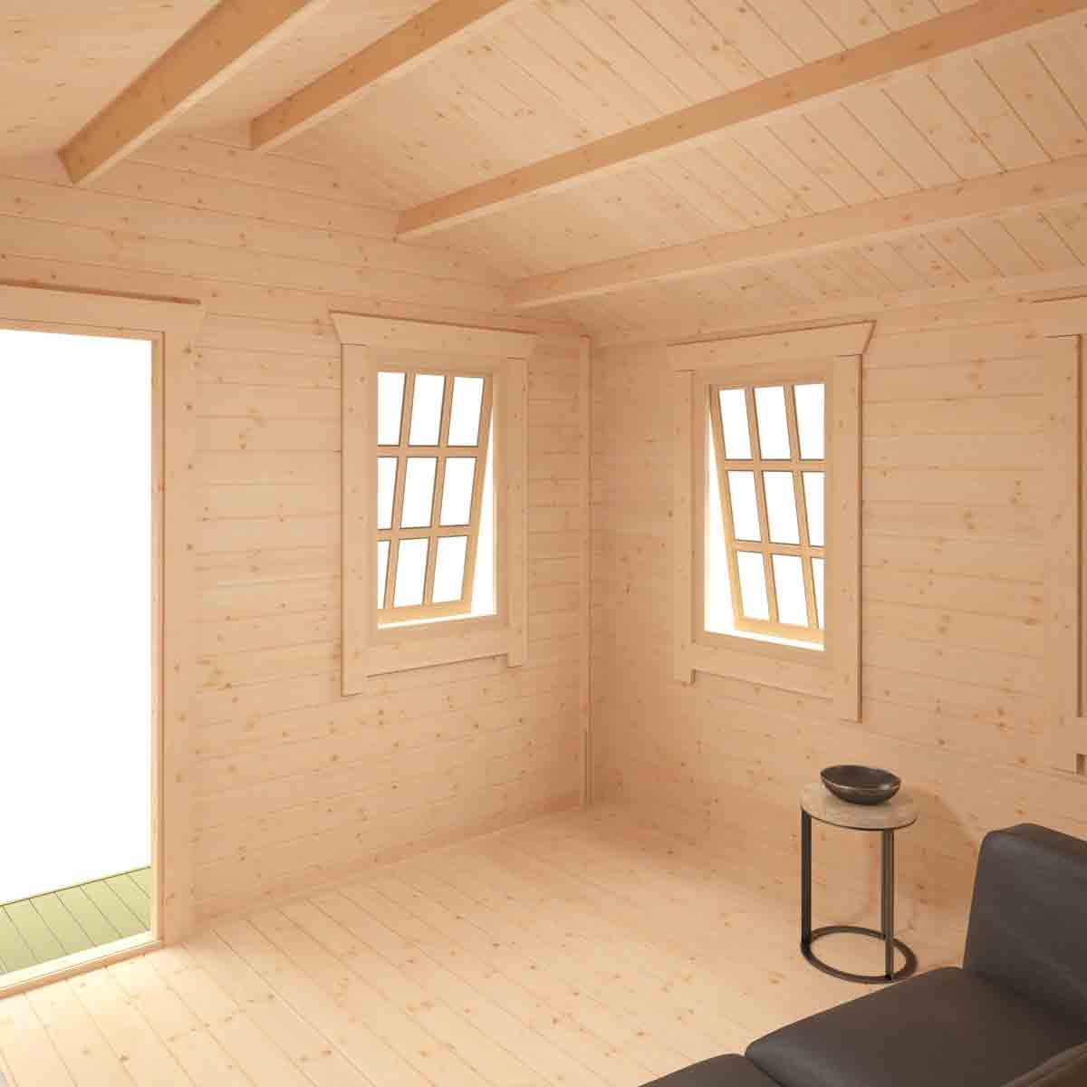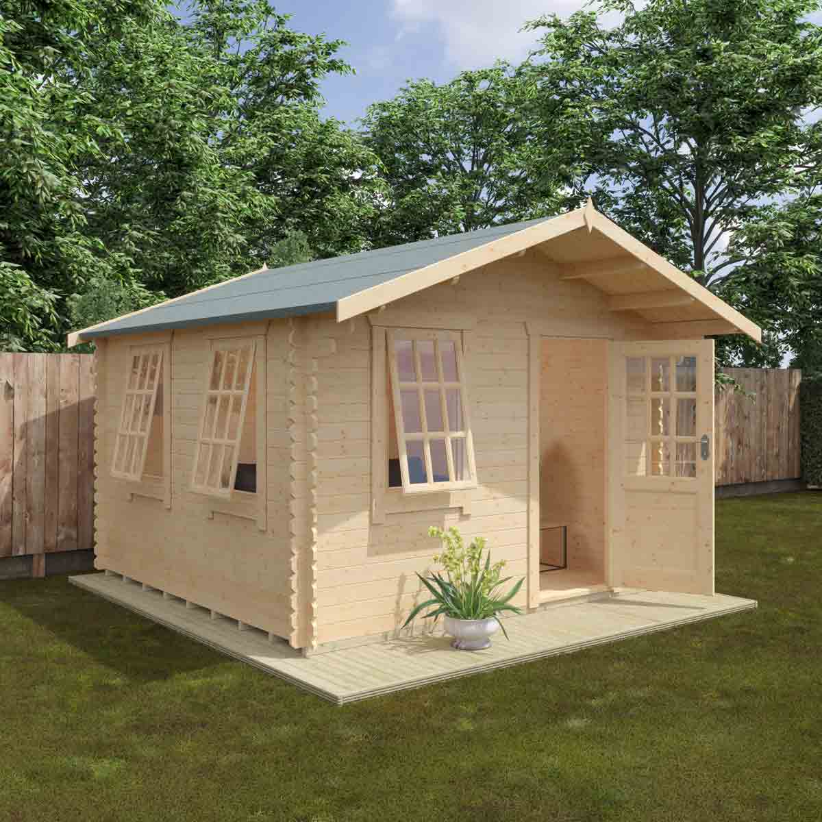Sit back and relax with the fantastic Carrington, a stylish and secure summer log cabin finished throughout with a touch of class. The Carrington is perfect for those dreaming of a calm and peaceful environment to unwind after a hard day’s work or simply to get away from the general clamour of the house. Why not use this large outdoor space as a safe and secure children’s play area, gym or even home office – the possibilities are endless. You must ensure that this garden building is assembled strictly in accordance with the assembly instructions that are provided and is installed on a firm and level base constructed from a suitably durable material. The garden building should be treated shortly after assembly, both externally and internally, with a good quality wood preserver and treated with a water-resistant treatment. Treatment should be reapplied annually to prolong the life of your building. Images and photos of products are provided for illustrative purposes only. Please note that product colours can vary slightly due to the digital photography process and variations in individual user monitor settings.