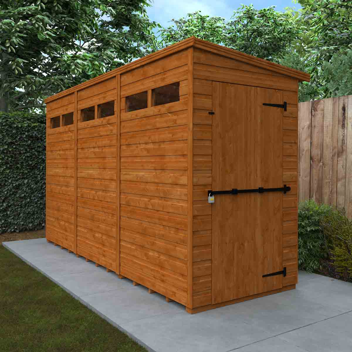 This Modular Pent Security shed is a solid, sturdy and protective building that features security windows and a security metal protection bar to reinforce the door lock.