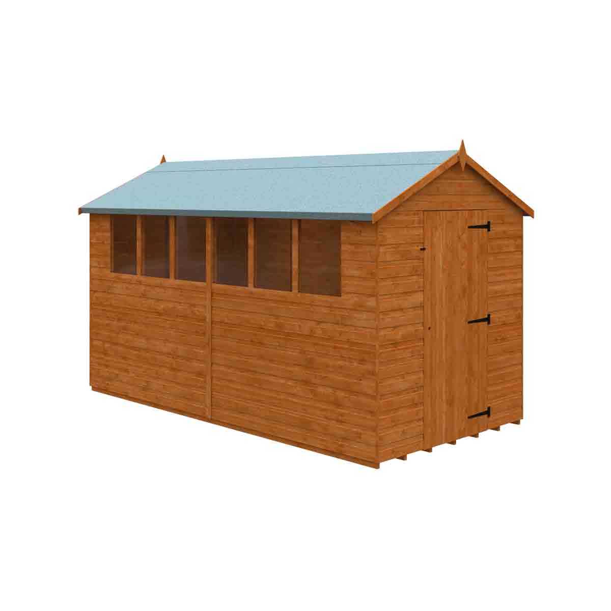 A traditional style garden shed with plenty of light and headroom in a vast range of sizes. The door will go on either end and the windows can be put on either side for flexibility. You must ensure that this garden building is assembled strictly in accordance with the assembly instructions that are provided and is installed on a firm and level base constructed from a suitably durable material. The garden building should be treated shortly after assembly, both externally and internally, with a good quality wood preserver and treated with a water-resistant treatment. Treatment should be reapplied annually to prolong the life of your building. All glazing units must be sealed, inside and out with silicone or other watertight solution of your choice (not supplied). Images and photos of products are provided for illustrative purposes only. Please note that product colours can vary slightly due to the digital photography process and variations in individual user monitor settings.