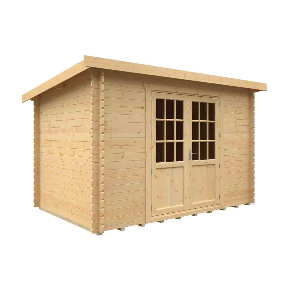 The Kingsley combines a unique and striking design with fantastic all round build quality. The Kingsley 28mm Pent Log Cabin creates an outdoor room, gym area, summerhouse or garden office – the opportunities are endless. The building is filled with superb and stylish features making it ideal for those yearning for an outside area with ample internal space in attractive and secure surroundings. You must ensure that this garden building is assembled strictly in accordance with the assembly instructions that are provided and is installed on a firm and level base constructed from a suitably durable material. The garden building should be treated shortly after assembly, both externally and internally, with a good quality wood preserver and treated with a water-resistant treatment. Treatment should be reapplied annually to prolong the life of your building. Images and photos of products are provided for illustrative purposes only. Please note that product colours can vary slightly due to the digital photography process and variations in individual user monitor settings.