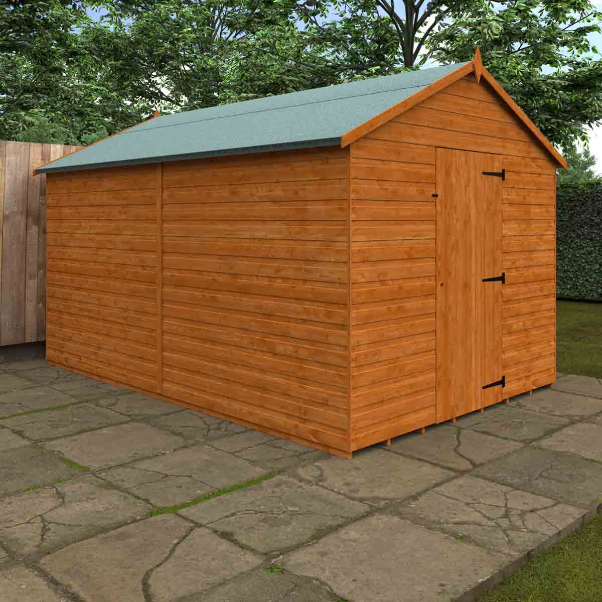 A traditional style garden shed with plenty of light and headroom in a vast range of sizes. The door will go on either end for flexibility. You must ensure that this garden building is assembled strictly in accordance with the assembly instructions that are provided and is installed on a firm and level base constructed from a suitably durable material. The garden building should be treated shortly after assembly, both externally and internally, with a good quality wood preserver and treated with a water-resistant treatment. Treatment should be reapplied annually to prolong the life of your building. All glazing units must be sealed, inside and out with silicone or other watertight solution of your choice (not supplied). Images and photos of products are provided for illustrative purposes only. Please note that product colours can vary slightly due to the digital photography process and variations in individual user monitor settings.