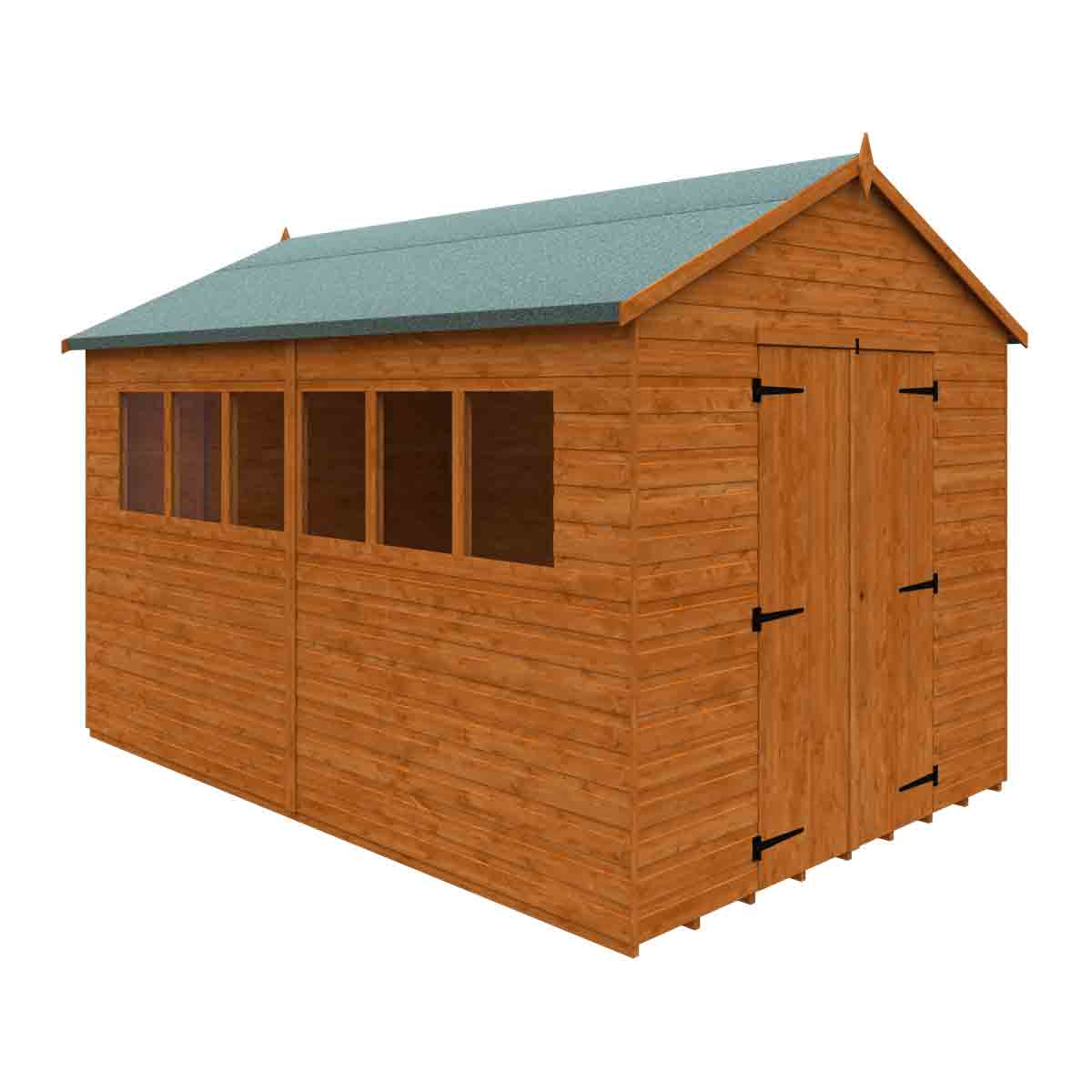 When size matters it is time to go for our extra-large range of secure storage workshops. With double doors and a massive internal space, the XL is just the job. You must ensure that this garden building is assembled strictly in accordance with the assembly instructions that are provided and is installed on a firm and level base constructed from a suitably durable material. The garden building should be treated shortly after assembly, both externally and internally, with a good quality wood preserver and treated with a water-resistant treatment. Treatment should be reapplied annually to prolong the life of your building. All glazing units must be sealed, inside and out with silicone or other watertight solution of your choice (not supplied). Images and photos of products are provided for illustrative purposes only. Please note that product colours can vary slightly due to the digital photography process and variations in individual user monitor settings.