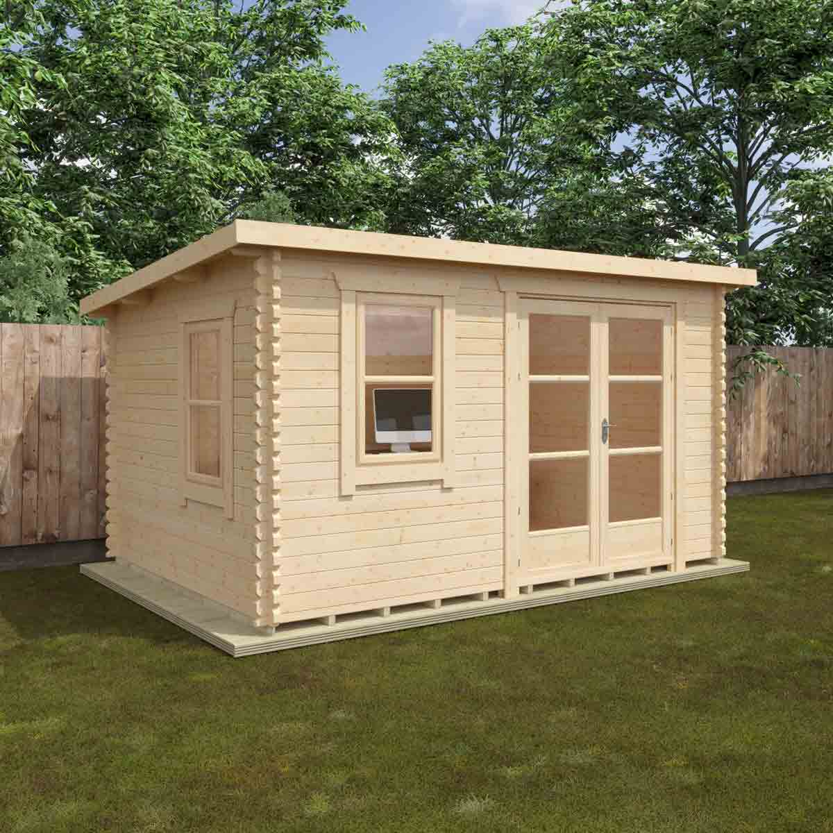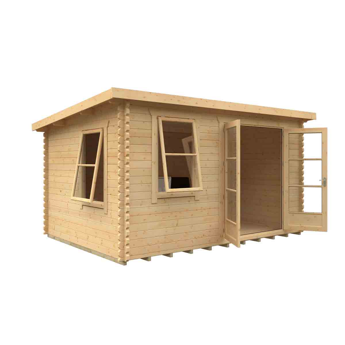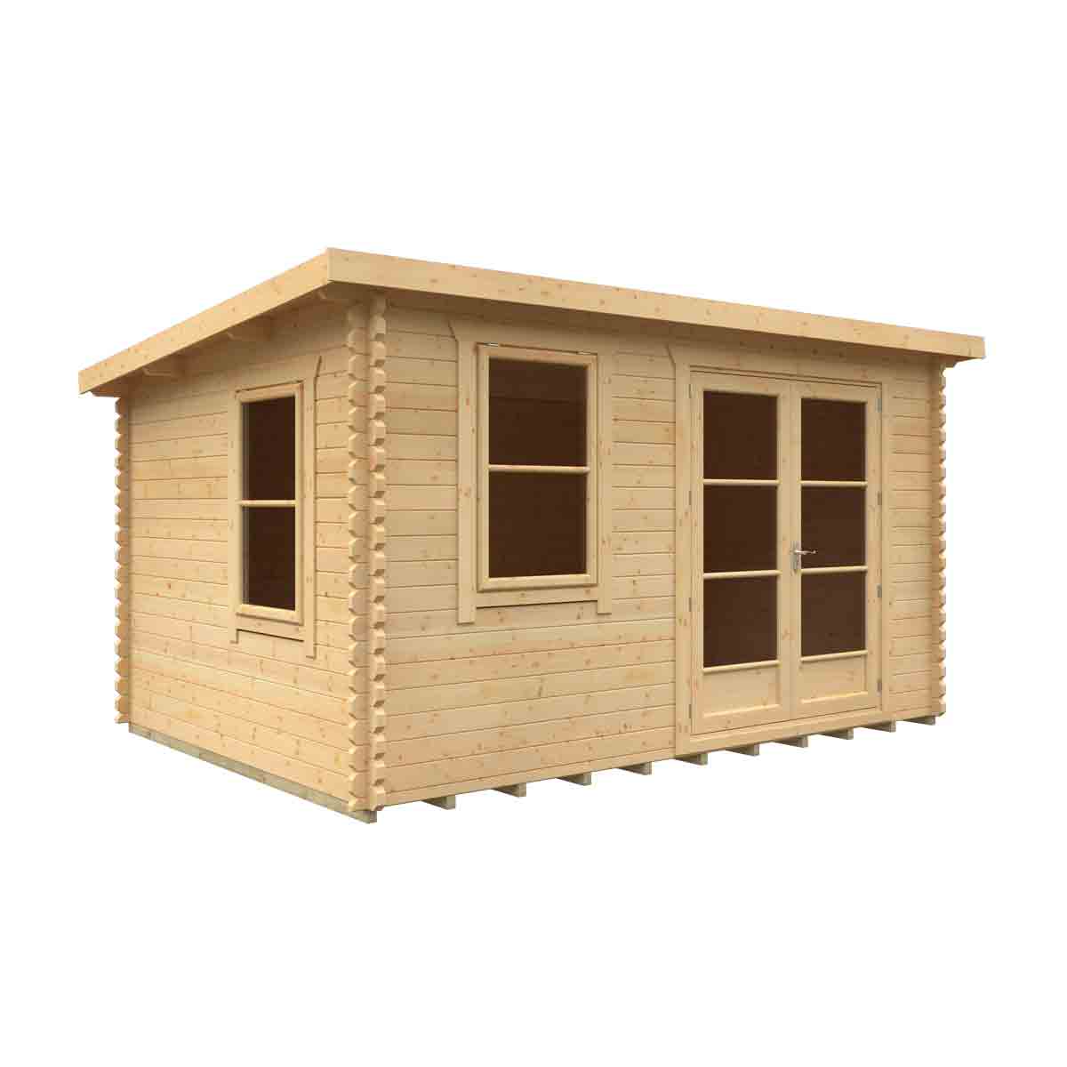 One of the best pent roof style log cabins on offer is the Belton log cabin - a very smart looking and feeling 44mm log cabin. Key features include draught sealed joiner made windows as standard, as well as the draft sealed and lockable fully glazed double doors. The Belton is a hugely adaptable building and is easy to customise, you may wish to use it as an outdoor bedroom, office or home gym. You must ensure that this garden building is assembled strictly in accordance with the assembly instructions that are provided and is installed on a firm and level base constructed from a suitably durable material. The garden building should be treated shortly after assembly, both externally and internally, with a good quality wood preserver and treated with a water-resistant treatment. Treatment should be reapplied annually to prolong the life of your building. Images and photos of products are provided for illustrative purposes only. Please note that product colours can vary slightly due to the digital photography process and variations in individual user monitor settings.