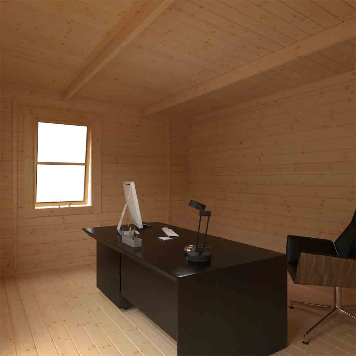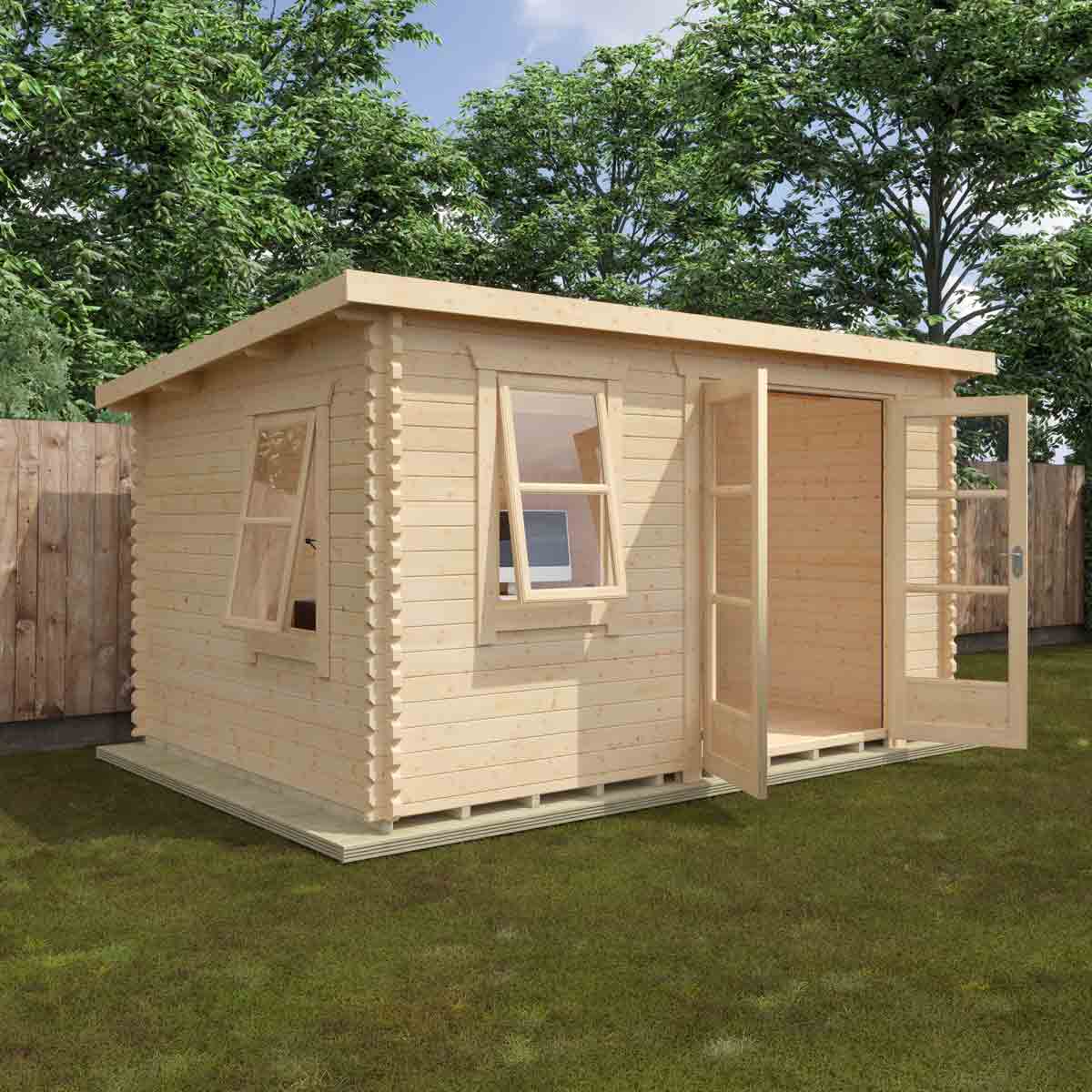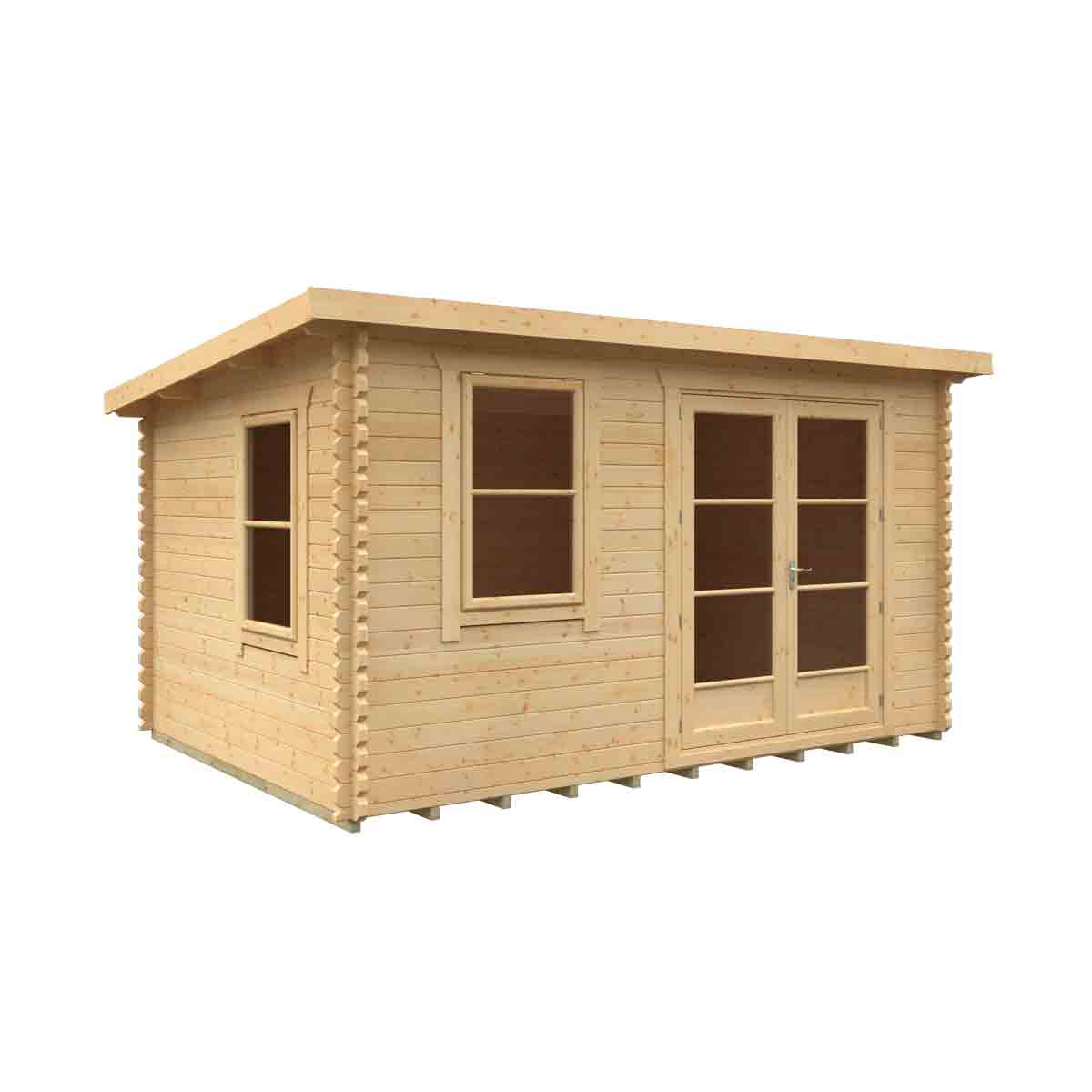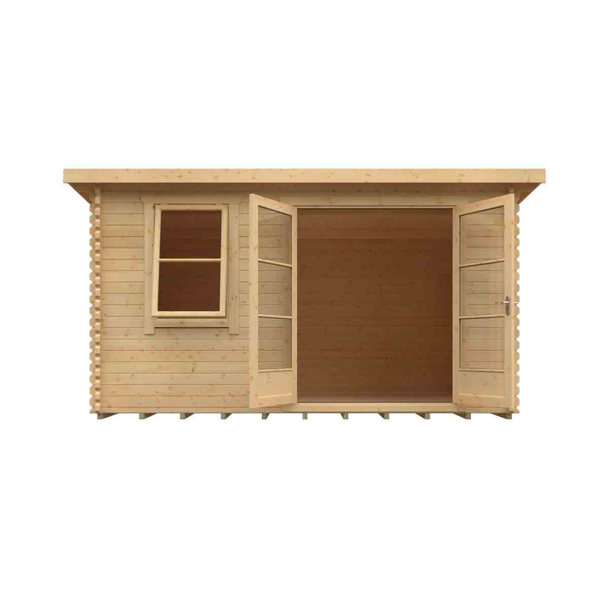 One of the best pent roof style log cabins on offer is the Belton log cabin - a very smart looking and feeling 44mm log cabin. Key features include draught sealed joiner made windows as standard, as well as the draft sealed and lockable fully glazed double doors. The Belton is a hugely adaptable building and is easy to customise, you may wish to use it as an outdoor bedroom, office or home gym. You must ensure that this garden building is assembled strictly in accordance with the assembly instructions that are provided and is installed on a firm and level base constructed from a suitably durable material. The garden building should be treated shortly after assembly, both externally and internally, with a good quality wood preserver and treated with a water-resistant treatment. Treatment should be reapplied annually to prolong the life of your building. Images and photos of products are provided for illustrative purposes only. Please note that product colours can vary slightly due to the digital photography process and variations in individual user monitor settings.