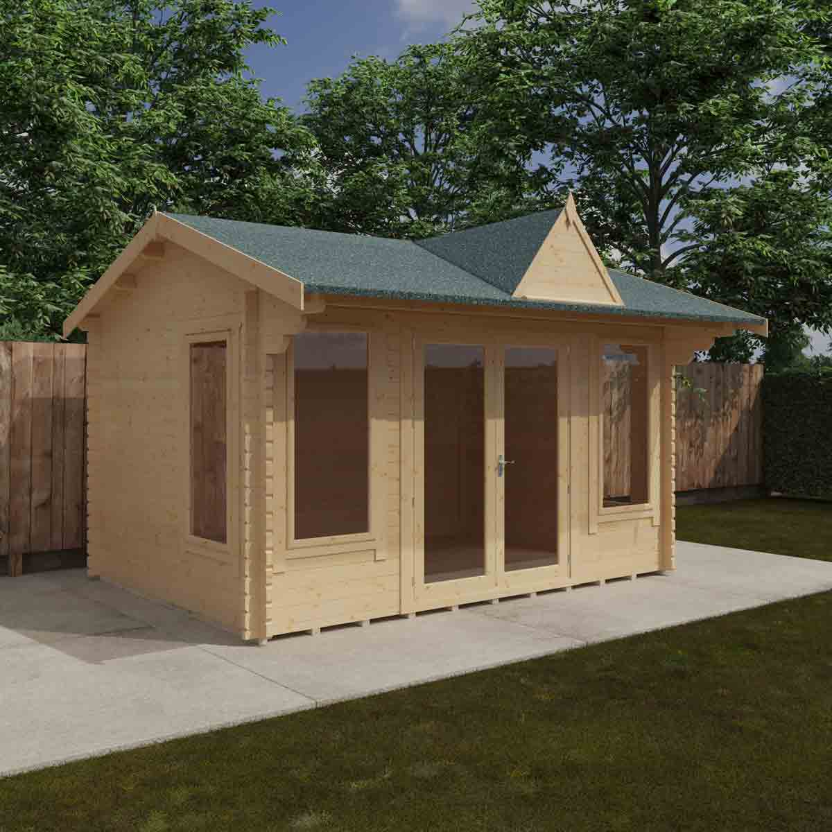 The Leyton Clocktower Log Cabin blends luxury, elegance, and spacious design with the renowned build quality. Built from sturdy 44mm interlocking logs, it’s designed for lasting durability, and comes with a pavilion style clock tower feature. Each size features draft-sealed double doors and joiner-made opening windows, keeping your cabin warm and secure all year round. For an enhanced finish, you can upgrade with heavy-duty coloured shingles and guttering. Like all 44mm Log Cabins, the Leyton is designed for easy assembly with an intuitive fit-log system. Four large windows flood the space with natural light, making it perfect as a stylish garden office or a relaxing outdoor retreat. However you choose to use it, the Leyton is a space you’ll love for years to come.
