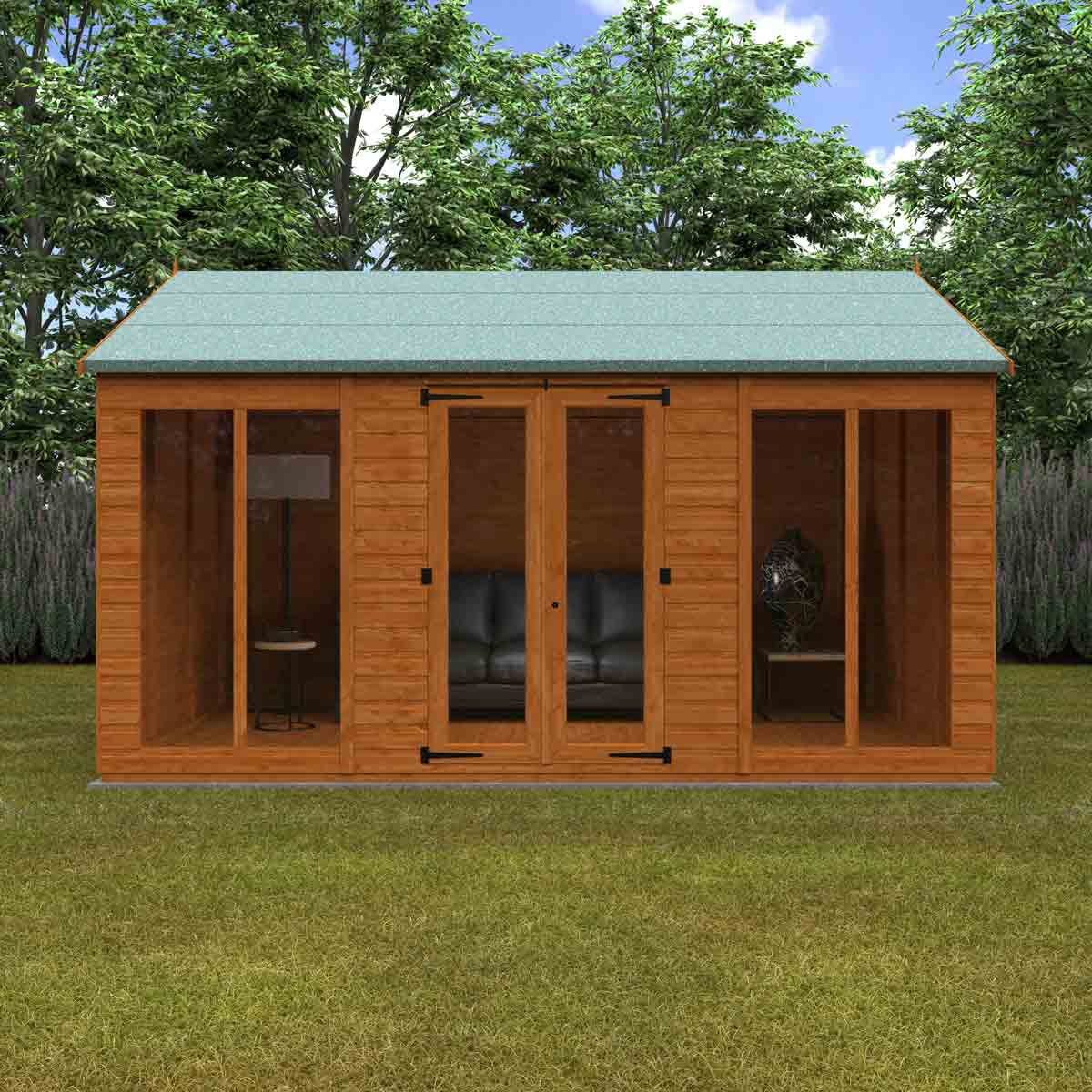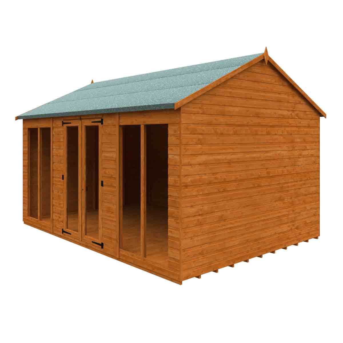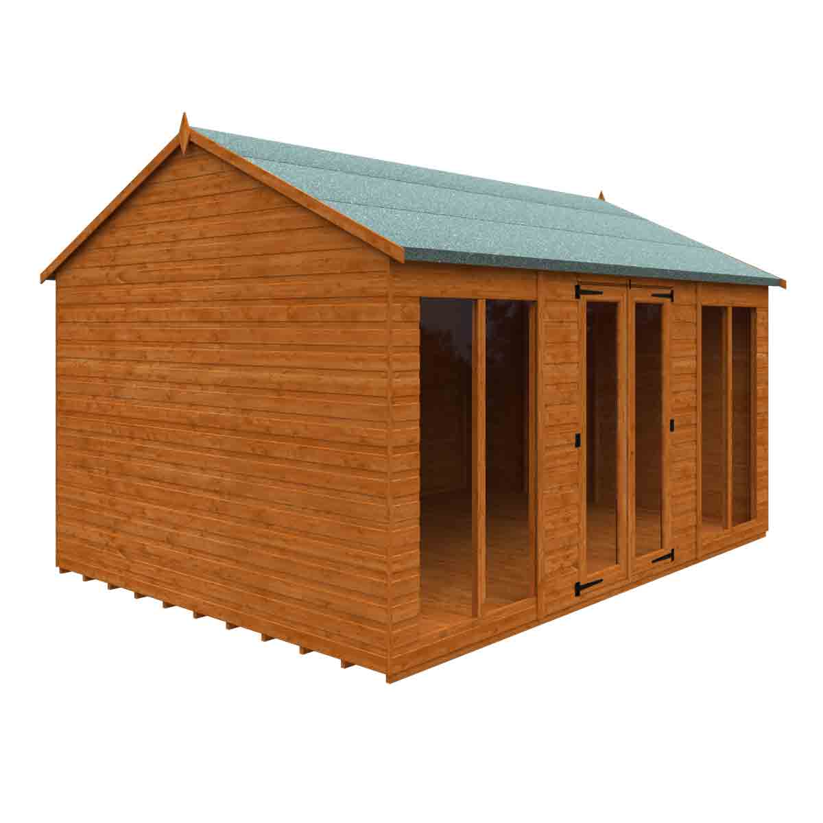 An alternative take on the classic Workshop design, the Workman Apex features the same high-quality components and structure but has the doors and windows along the side of the building. You must ensure that this garden building is assembled strictly in accordance with the assembly instructions that are provided and is installed on a firm and level base constructed from a suitably durable material. The garden building should be treated shortly after assembly, both externally and internally, with a good quality wood preserver and treated with a water-resistant treatment. Treatment should be reapplied annually to prolong the life of your building. All glazing units must be sealed, inside and out with silicone or other watertight solution of your choice (not supplied). Images and photos of products are provided for illustrative purposes only. Please note that product colours can vary slightly due to the digital photography process and variations in individual user monitor settings.