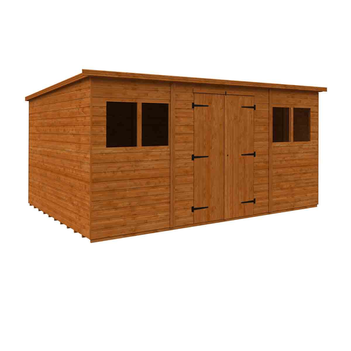 The Workman Pent is a modern flat-roof iteration of the ever-popular Workman Apex, a best-seller for many years. Available in various sizes, the Workman Pent offers practical and spacious outdoor storage. Boasting impressive dimensions, it features excellent eaves height, catering to both storage needs and workshop requirements. Double doors on the long side provide easy access, whether placed against a wall or fence. Designed with style in mind, the Workman Pent incorporates windows on either side of the door while maintaining its sturdy construction, thanks to the 12mm shiplap cladding and robust rounded four-corner framework, crafted from top-quality European softwoods. This building stands as a durable and valuable investment.