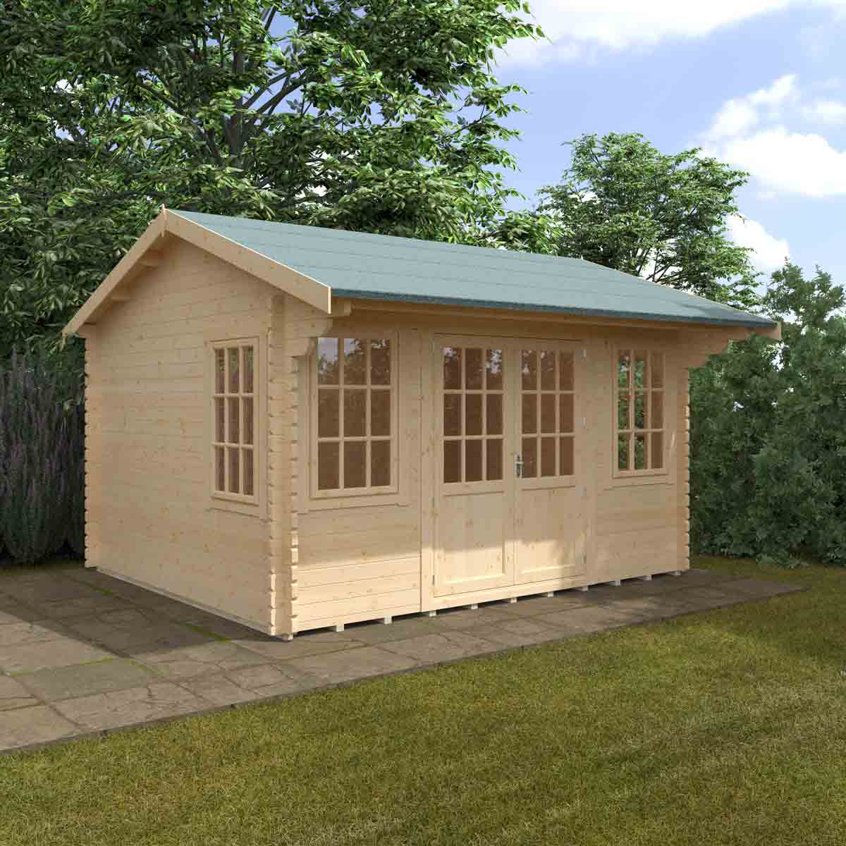 The Dalton Log Cabin combines luxury, elegance and space with fantastic quality. Constructed from 44mm interlocking logs, the Dalton is sure to last for years to come. All sizes come with draught sealed Georgian Style double doors and joiner made opening windows, ensuring your cabin will be both warm and secure. Optionally you can upgrade to our heavy duty coloured shingles and guttering to really complete this log cabin. You must ensure that this garden building is assembled strictly in accordance with the assembly instructions that are provided and is installed on a firm and level base constructed from a suitably durable material. The garden building should be treated shortly after assembly, both externally and internally, with a good quality wood preserver and treated with a water-resistant treatment. Treatment should be reapplied annually to prolong the life of your building. Images and photos of products are provided for illustrative purposes only. Please note that product colours can vary slightly due to the digital photography process and variations in individual user monitor settings.