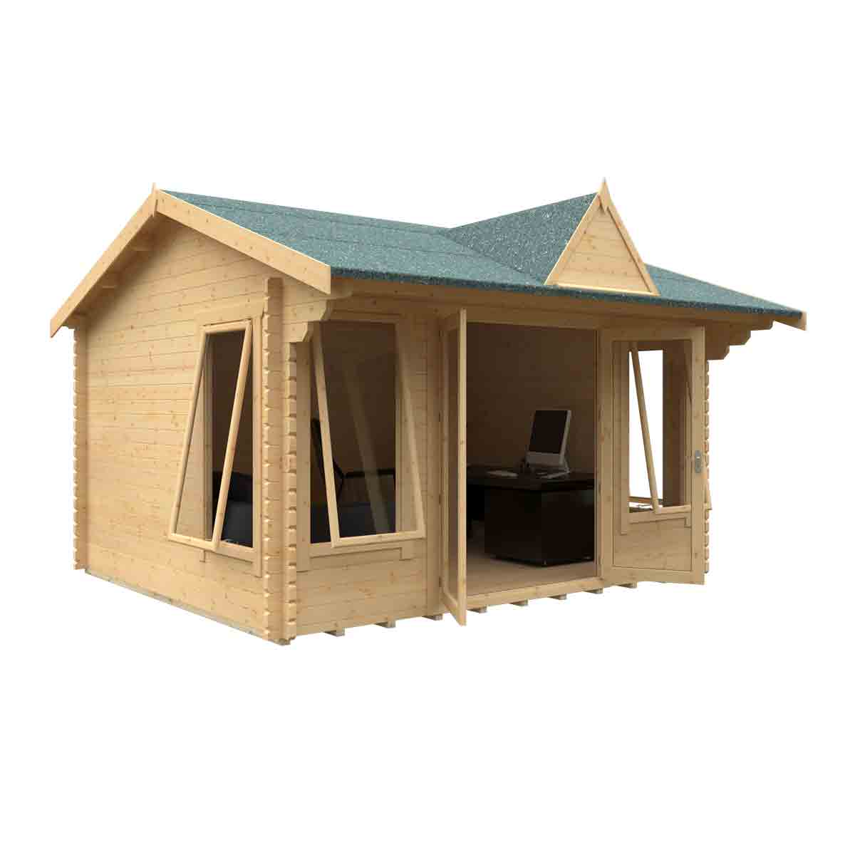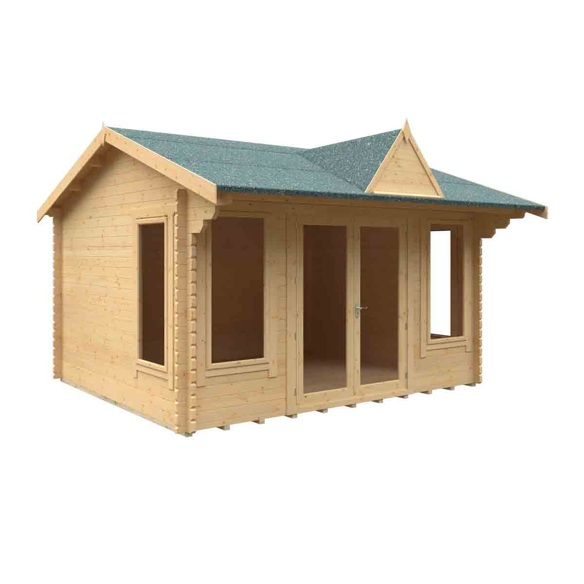 The Leyton Clocktower Log Cabin blends luxury, elegance, and spacious design with the renowned build quality. Built from sturdy 44mm interlocking logs, it’s designed for lasting durability, and comes with a pavilion style clock tower feature. Each size features draft-sealed double doors and joiner-made opening windows, keeping your cabin warm and secure all year round. For an enhanced finish, you can upgrade with heavy-duty coloured shingles and guttering. Like all 44mm Log Cabins, the Leyton is designed for easy assembly with an intuitive fit-log system. Four large windows flood the space with natural light, making it perfect as a stylish garden office or a relaxing outdoor retreat. However you choose to use it, the Leyton is a space you’ll love for years to come.