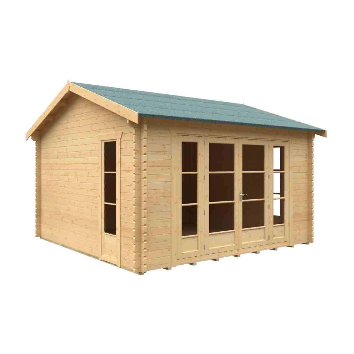 This spacious Bamber Log Cabin blends both comfort and luxury in to one affordable package. Complete with professional full length joiner made windows you’ll be sure to enjoy those summer days relaxing in the beautiful sunlight. The extra thick 44mm interlocking logs are manufactured to the highest quality standard providing additional warmth, security and protection. You must ensure that this garden building is assembled strictly in accordance with the assembly instructions that are provided and is installed on a firm and level base constructed from a suitably durable material. The garden building should be treated shortly after assembly, both externally and internally, with a good quality wood preserver and treated with a water-resistant treatment. Treatment should be reapplied annually to prolong the life of your building. Images and photos of products are provided for illustrative purposes only. Please note that product colours can vary slightly due to the digital photography process and variations in individual user monitor settings.