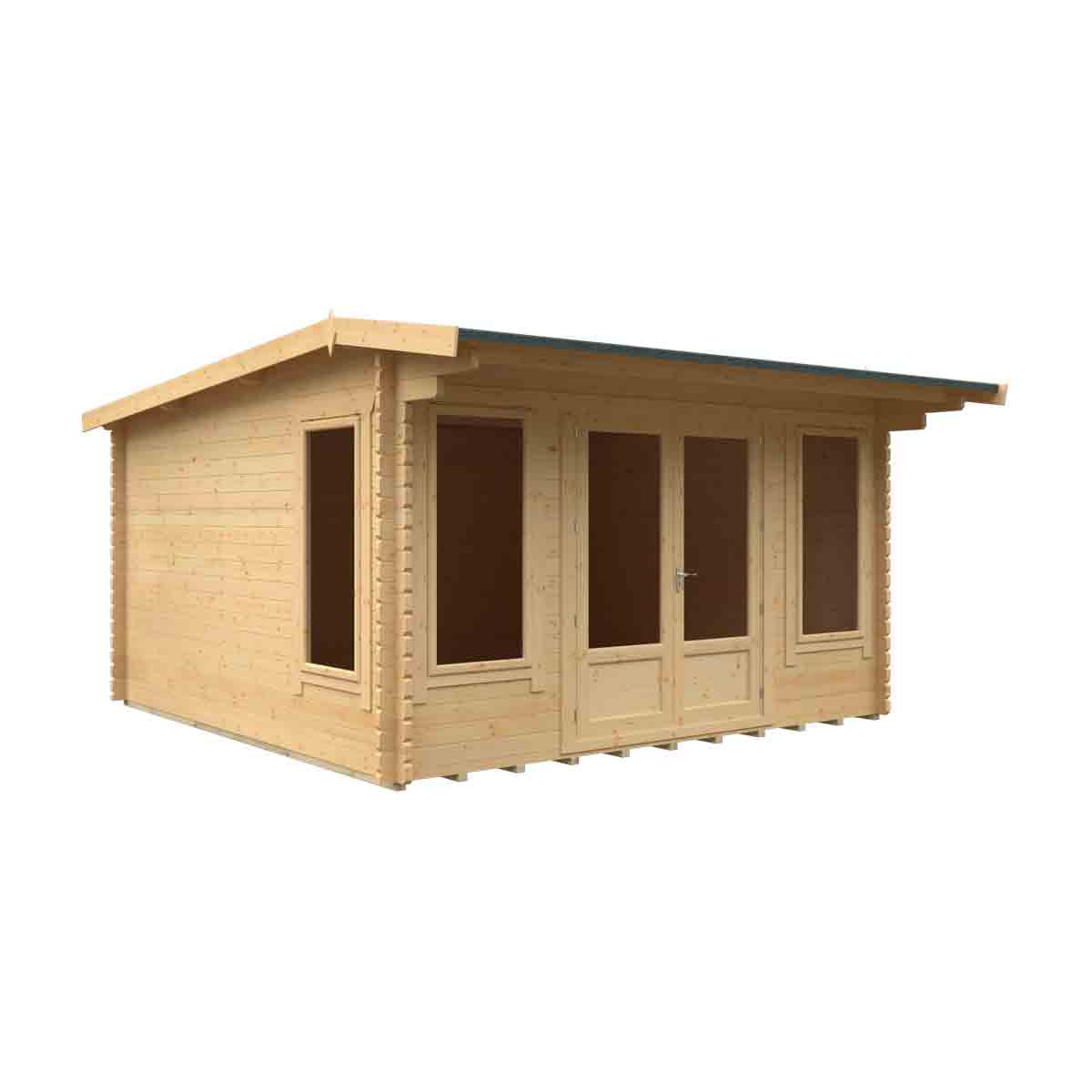 One of the latest designs in our range, the Jacob Log Cabin combines spacious design with quality in mind. The hybrid design of the roof allows more headroom inside the cabin but complies with the 2. 5m high planning regulation, whilst the generous overhang will protect you from the elements all year round. You must ensure that this garden building is assembled strictly in accordance with the assembly instructions that are provided and is installed on a firm and level base constructed from a suitably durable material. The garden building should be treated shortly after assembly, both externally and internally, with a good quality wood preserver and treated with a water-resistant treatment. Treatment should be reapplied annually to prolong the life of your building. Images and photos of products are provided for illustrative purposes only. Please note that product colours can vary slightly due to the digital photography process and variations in individual user monitor settings.