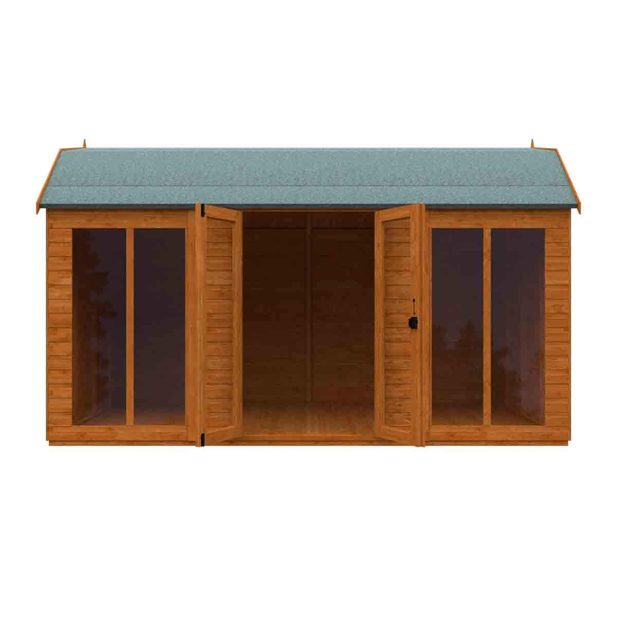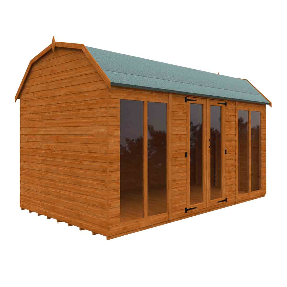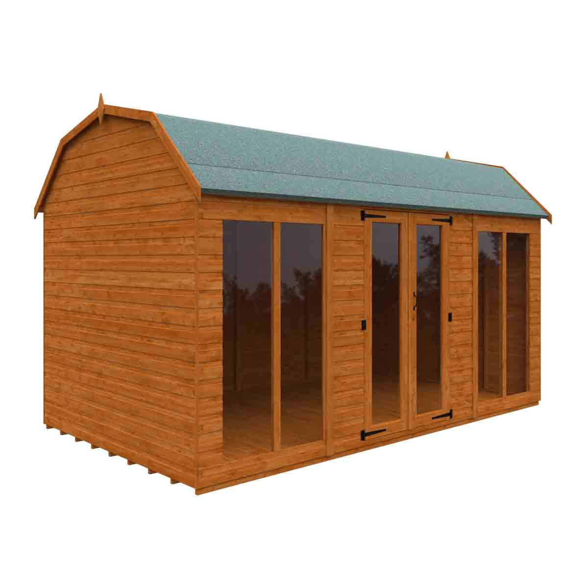 The Full Pane Barn Roof Summerhouse is a stylish and spacious garden escape, featuring a distinctive barn-style roof for added headroom and an airy feel. Crafted in our Yorkshire workshop from premium materials, its elegant full-pane toughened glass front makes it perfect for entertaining, relaxing, or working from home. Available in a range of sizes, it’s designed to be your ideal garden space.Built for durability, it boasts superior tongue and groove shiplap cladding, a strong boarded roof and floor, and large toughened glass windows. Double doors ensure easy access, while a secure lock-and-key system adds peace of mind. Complete with heavy-duty roofing felt for all-weather protection, this barn summerhouse is a stunning and practical addition to any outdoor space.