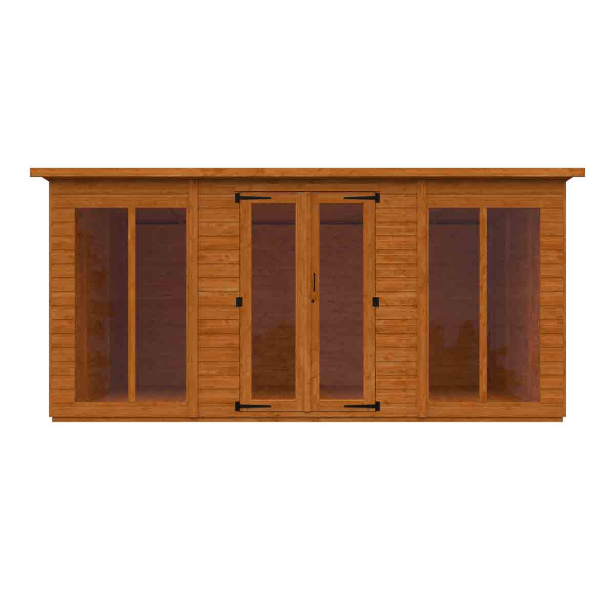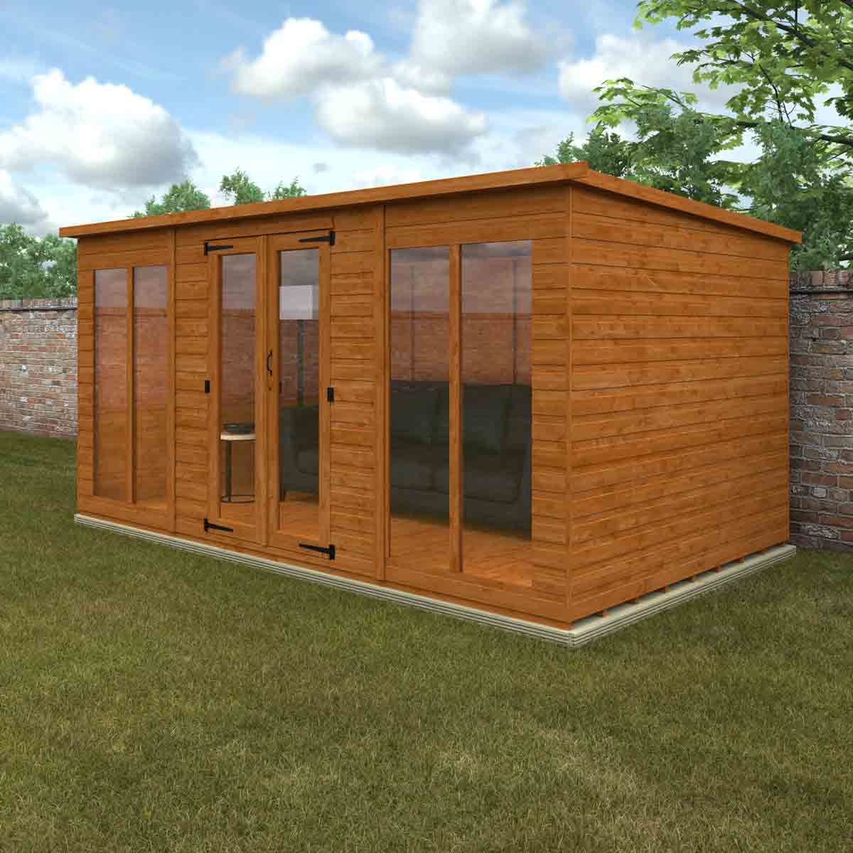 A delightful and stylish garden building, this full-pane workshop is meticulously crafted from top-quality materials and finished to our exacting standards. Available in eight sizes, this contemporary summerhouse combines elegant design with exceptional craftsmanship, making it the perfect garden room for any need. Featuring a sleek pent roof and full-pane doors and windows, the interior is flooded with natural light, creating a serene space for work or leisure. The wide double doors allow for easy access, while the robust pent roof is designed to withstand the unpredictable British weather. With ample internal space, it is ideal for enjoying sunny days with family and friends.Constructed with superior-grade tongue-and-groove shiplap cladding, as well as tongue-and-groove boards for the roof and floor, this summerhouse guarantees lasting strength and durability. The extra-high eaves enhance accessibility, and the toughened glazing, along with a secure lock and key system, ensures added peace of mind. Heavy-duty roofing felt comes standard, providing reliable weatherproof protection throughout the year, complemented by full-pane windows and expertly crafted joiner-made doors.