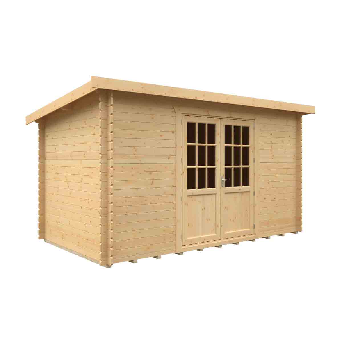 The Kingsley combines a unique and striking design with fantastic all round build quality. The Kingsley 44mm Pent Log Cabin creates an outdoor room, gym area, summerhouse or garden office – the opportunities are endless. The building is filled with superb and stylish features making it ideal for those yearning for an outside area with ample internal space in attractive and secure surroundings. You must ensure that this garden building is assembled strictly in accordance with the assembly instructions that are provided and is installed on a firm and level base constructed from a suitably durable material. The garden building should be treated shortly after assembly, both externally and internally, with a good quality wood preserver and treated with a water-resistant treatment. Treatment should be reapplied annually to prolong the life of your building. Images and photos of products are provided for illustrative purposes only. Please note that product colours can vary slightly due to the digital photography process and variations in individual user monitor settings.