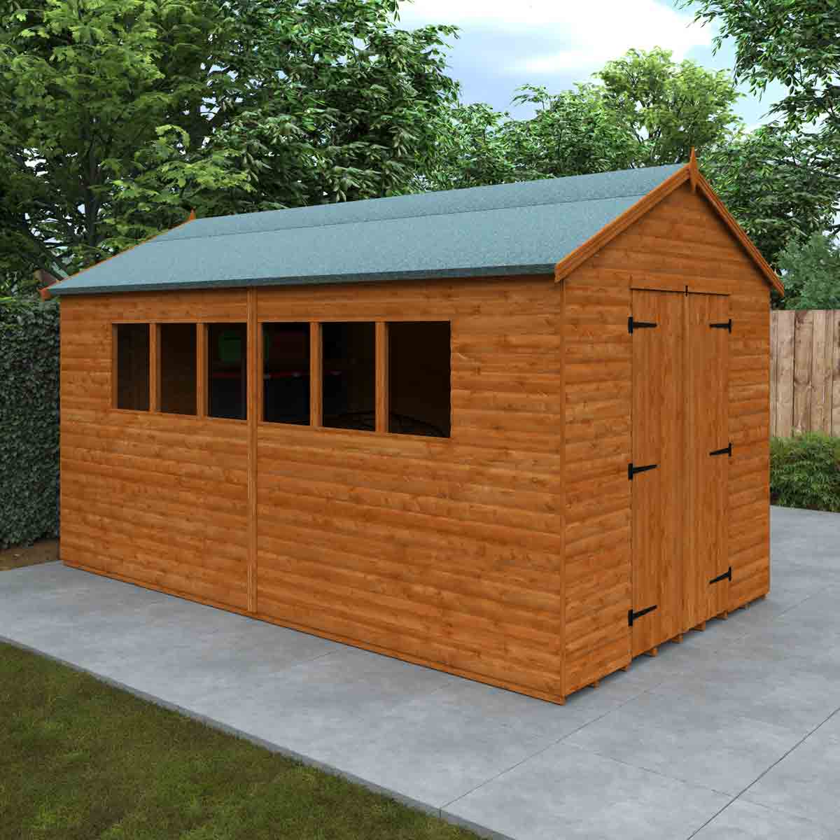 The Loglap Workshop is built with all the same quality as standard in our other workshops but with our unique Loglap cladding profile. Offering all the usual great features and double door access with a different look. You must ensure that this garden building is assembled strictly in accordance with the assembly instructions that are provided and is installed on a firm and level base constructed from a suitably durable material. The garden building should be treated shortly after assembly, both externally and internally, with a good quality wood preserver and treated with a water-resistant treatment. Treatment should be reapplied annually to prolong the life of your building. All glazing units must be sealed, inside and out with silicone or other watertight solution of your choice (not supplied). Images and photos of products are provided for illustrative purposes only. Please note that product colours can vary slightly due to the digital photography process and variations in individual user monitor settings.